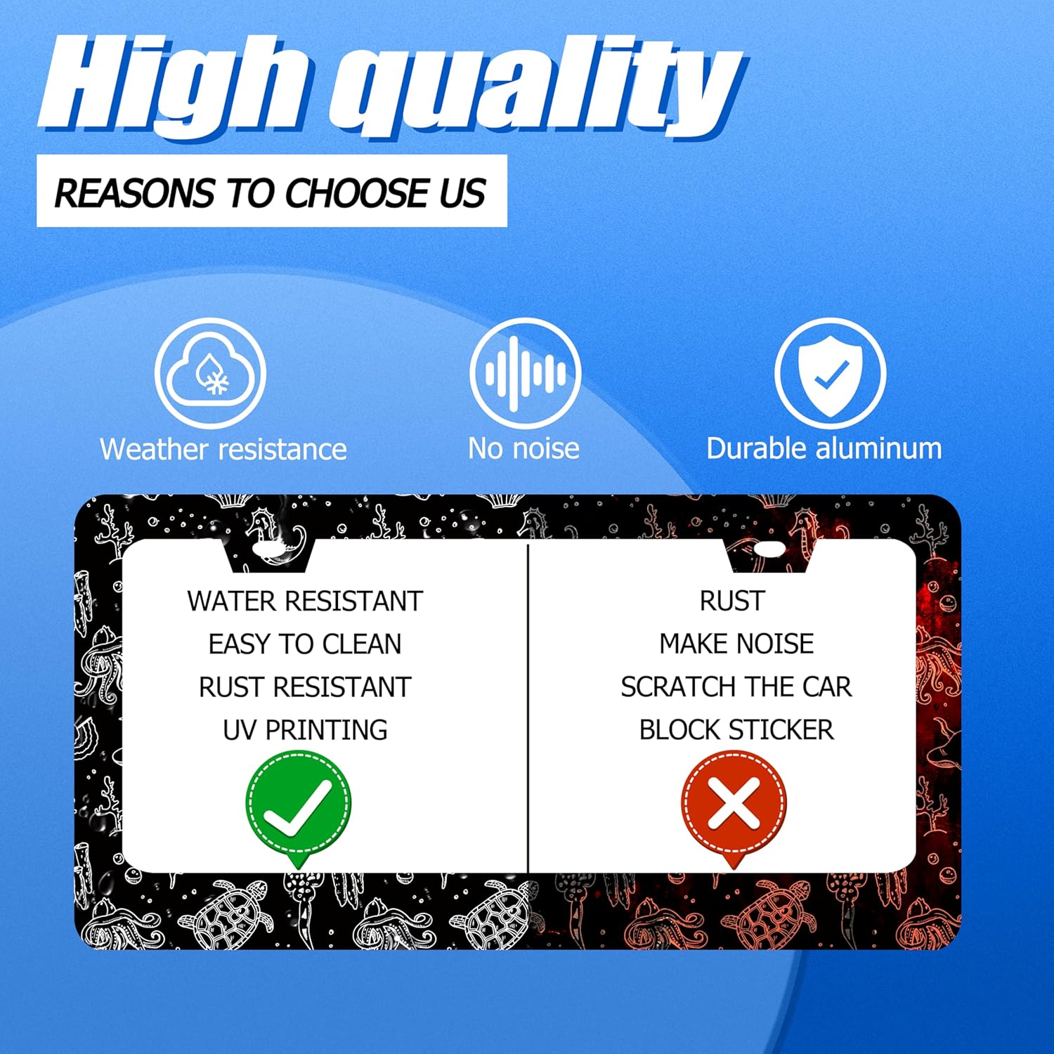 Turtles License Plate Frame Black and White Sea Turtle License Plate Stainless Steel Funny License Plate Holder Men Women Ocean Animal Car Accessory Decoration 12.3" x 6.3"