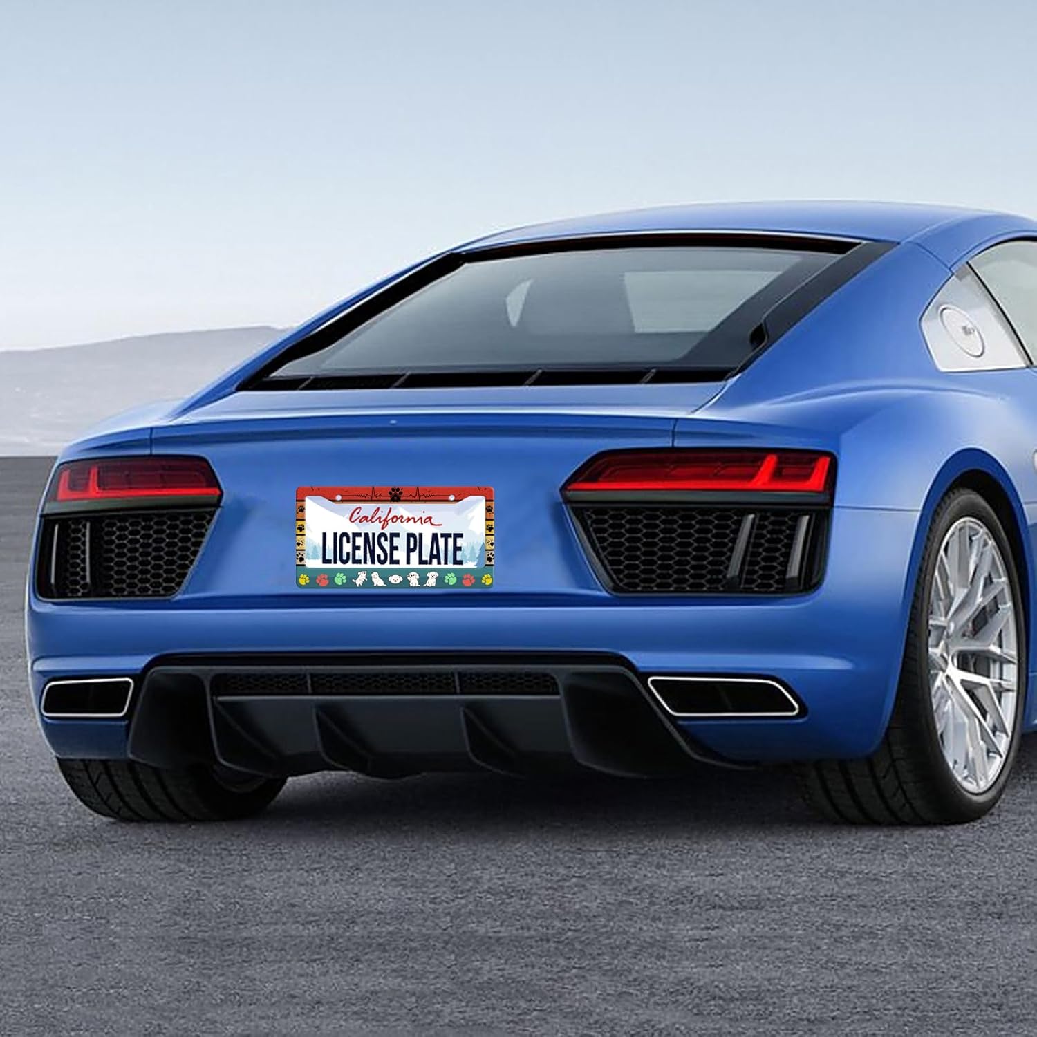 Dog License Plate Frame Cute Dog Paws License Plate Stainless Steel Animal Funny License Plate Holder Personalized Dog Car Accessory Decoration 12.3" x 6.3"for Men Women
