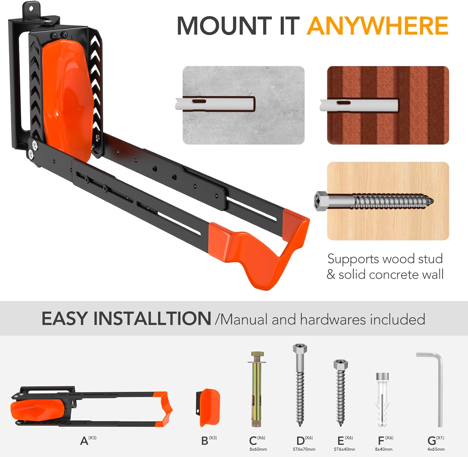 - Space-Saving Rotation Design:±65° rotation design efficiently utilizes floor and wall space, and is easy to load and unload with smooth rotation, perfect for apartments, garages, and small spaces.