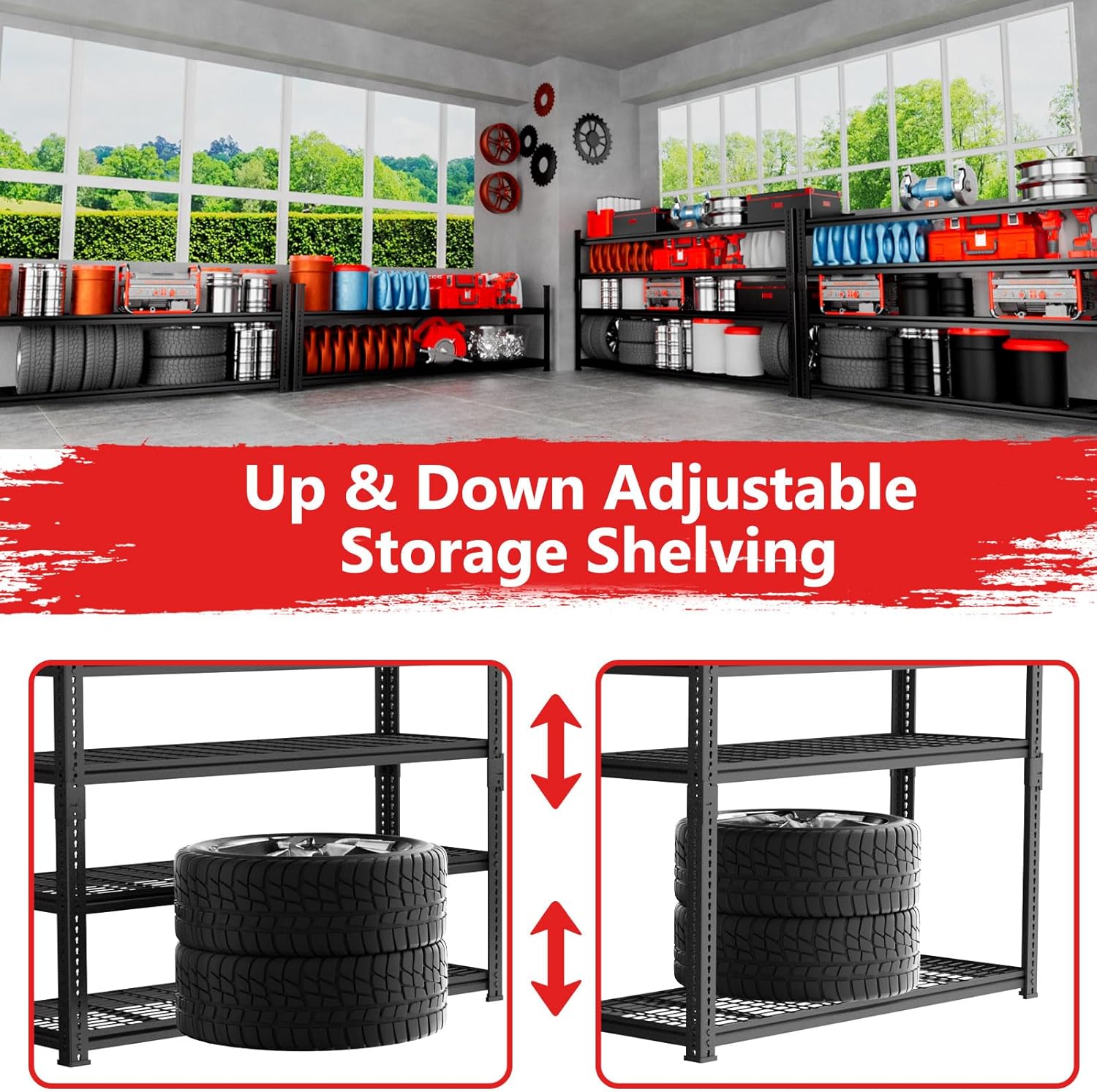 - 2640LBS Heavy Duty Capacity: MODCART's heavy-duty garage shelving is built with robust steel columns, supporting up to 660 lbs per shelf for a total of 2640 lbs. it offers reliable organization for your garage, kitchen, or laundry room