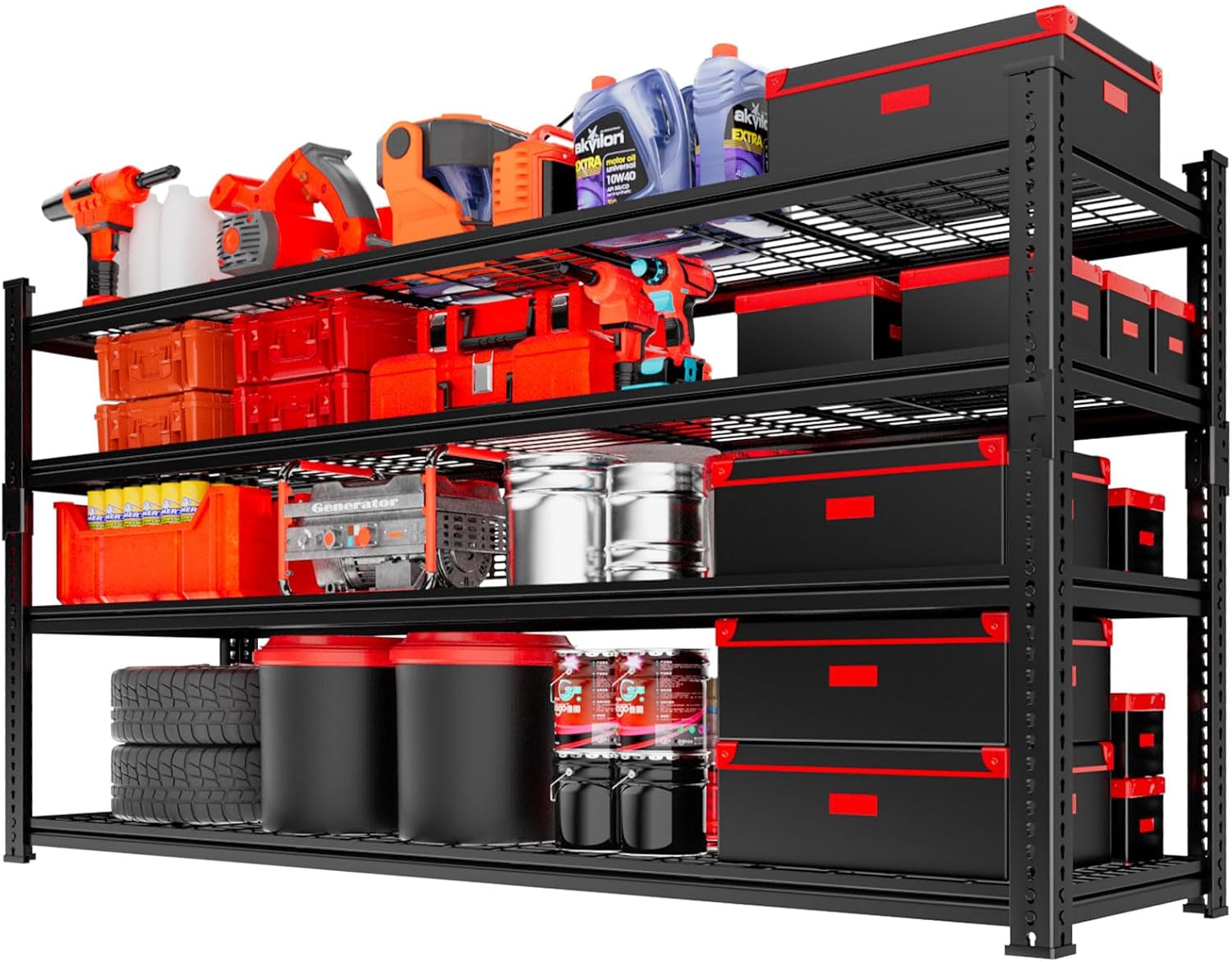 - 2640LBS Heavy Duty Capacity: MODCART's heavy-duty garage shelving is built with robust steel columns, supporting up to 660 lbs per shelf for a total of 2640 lbs. it offers reliable organization for your garage, kitchen, or laundry room