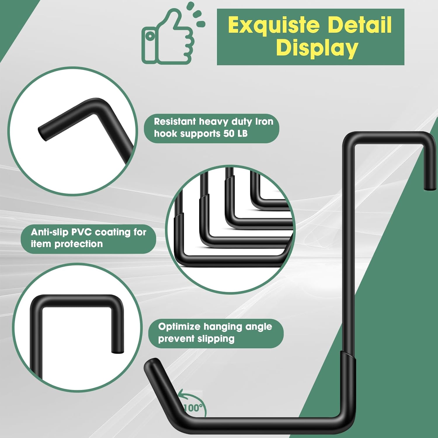 - High Quality - This Is a Rust-Proof, Smooth, Non-Slip Large Heavy Duty garage hanging hooks. It Is Made Of Heavy Steel Metal Material With Vinyl Coating, Strong Enough To Last For Many Years Without Deformation, Enough To Meet Your Daily Needs And Replacements.