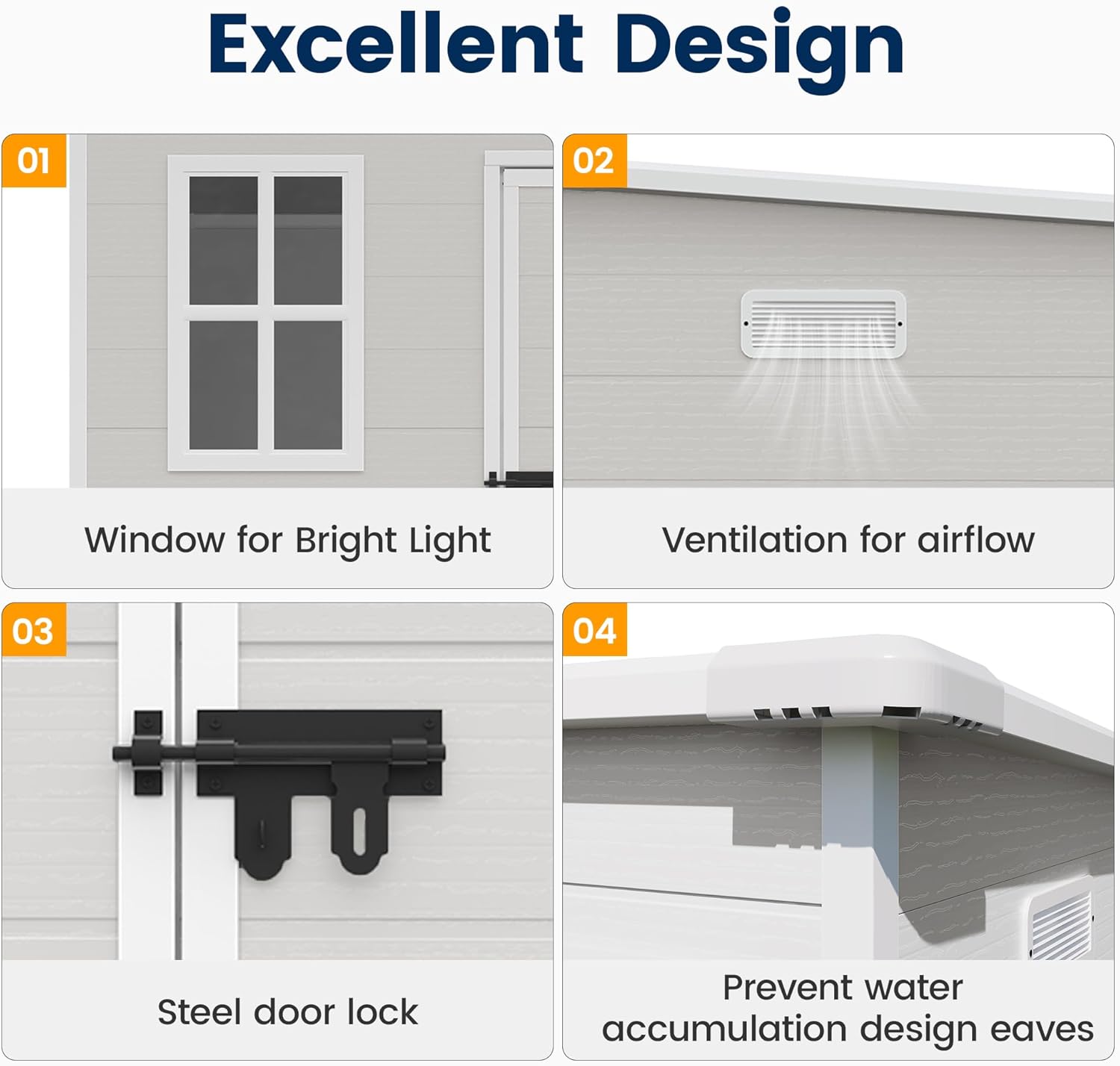 - STURDY STRUCTURE: Our outdoor storage room is equipped with a sturdy structure that can protect the stored items from the threat of rain and mold, while the lockable doors also provide security for your property