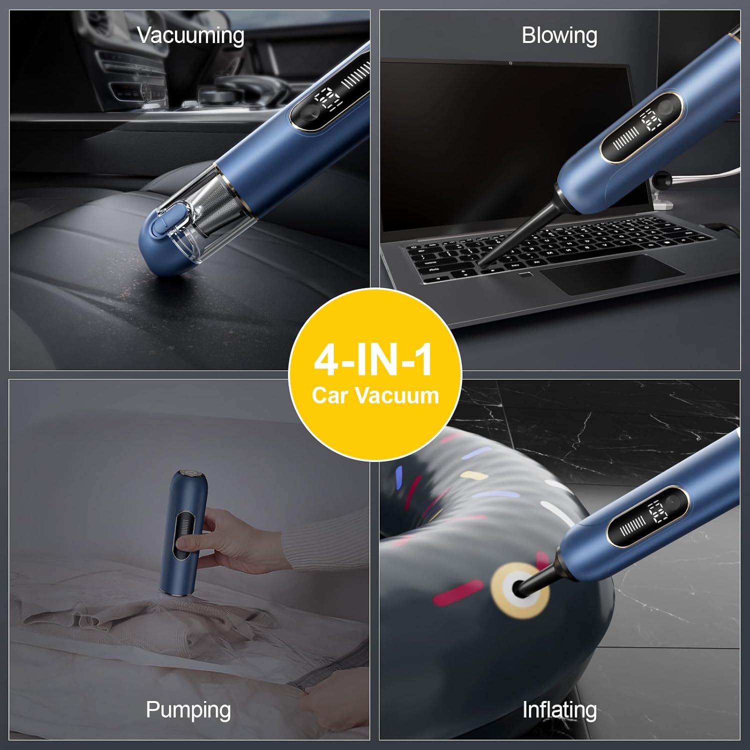 - 【4-In-1 Multifunctionality】 This Portable Vacuum For Car Combines The Functions Of Vacuuming, Blowing, Inflating, And Pumping. It Can Be Used To Clean Pet Hair And Dust Both At Home And In The Car, As Well As In Office Environments.