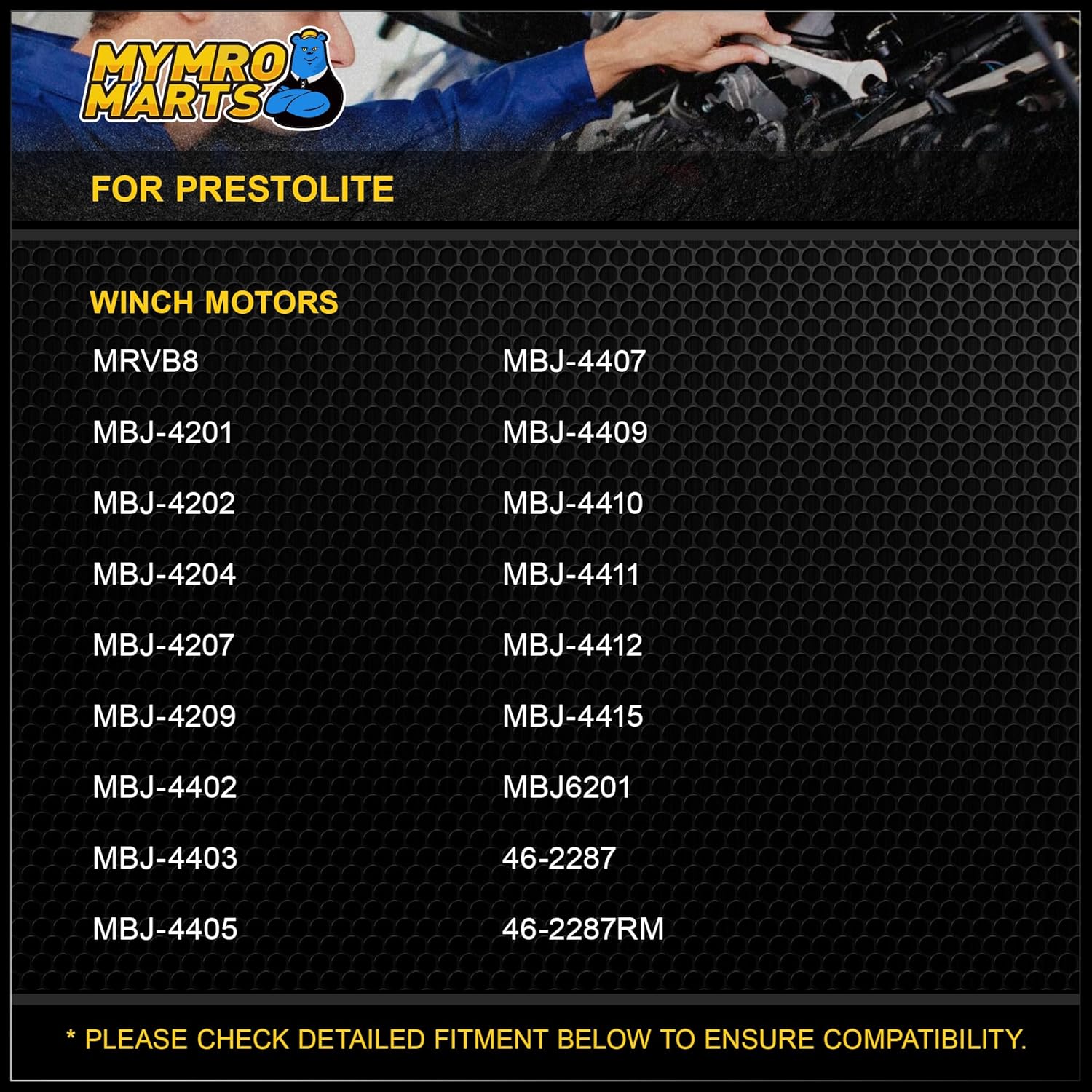 - Fit for Prestolite MRVB8 MBJ-4201 MBJ-4202 MBJ-4204 MBJ-4207 MBJ-4209 MBJ-4402 MBJ-4403 MBJ-4405 MBJ-4407 MBJ-4409 MBJ-4410 MBJ-4411 MBJ-4412 MBJ-4415 MBJ6201 46-2287 46-2287RM