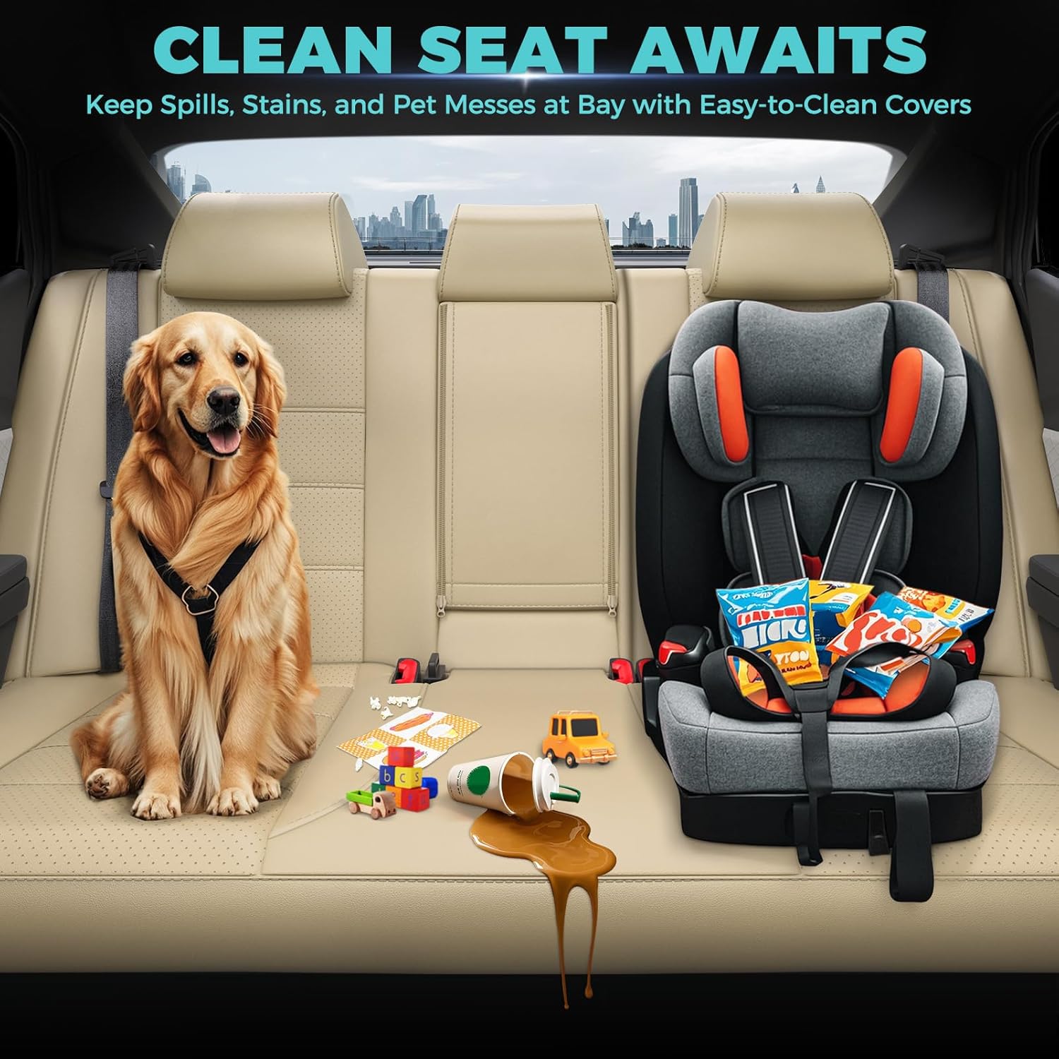 - 【Superior Car Seat Protector】: These waterproof seat covers for cars adopts a four-layer structure, providing exceptional protection to safeguard your carseat from coffee spills and pet scratches. It is also easy to clean, simply wipe with damp cloths to make your waterproof car seat cover looks brand new for years.