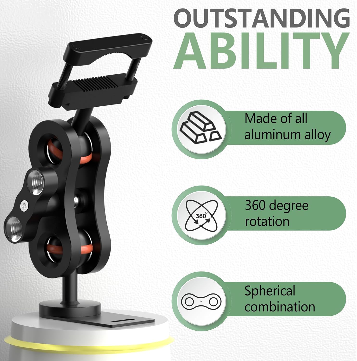 - Aluminum rearview mirror bracket has strong expandability, with two 1/4 screw holes at the handle that can be used to expand other devices.360 °rotating ball head design, flexible adjustment, ensuring the best viewing angle while driving.