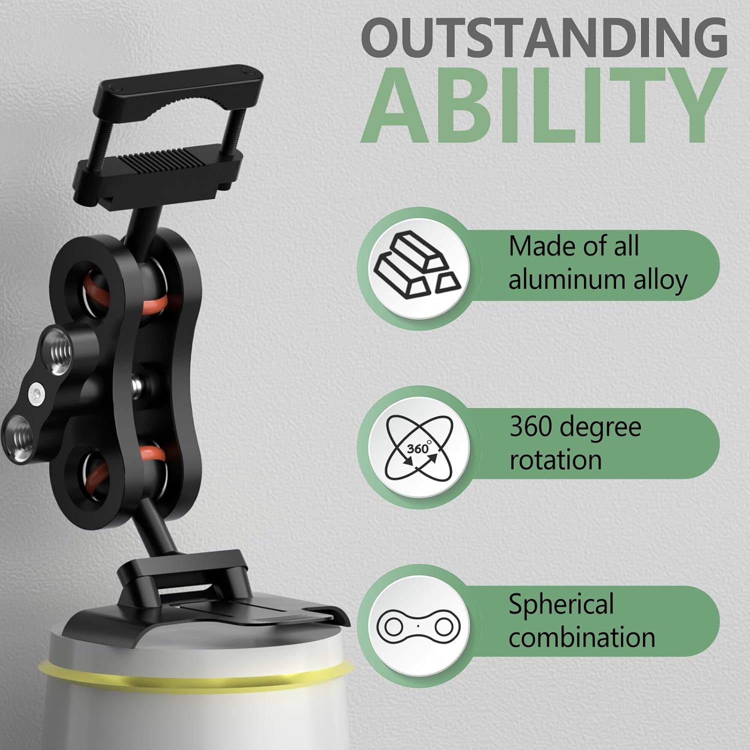 - Aluminum rearview mirror bracket has strong expandability, with two 1/4 screw holes at the handle that can be used to expand other devices.360 °rotating ball head design, flexible adjustment, ensuring the best viewing angle while driving.