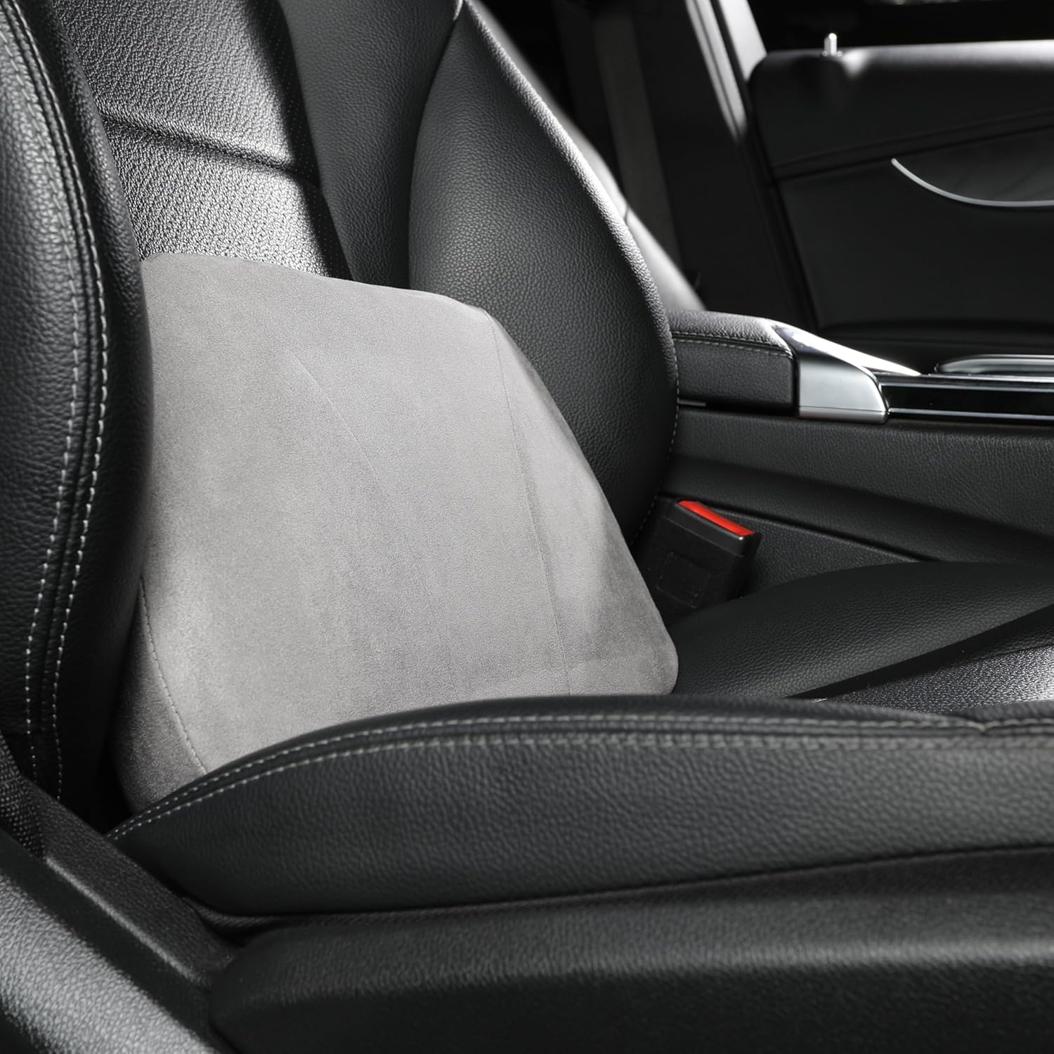 1P Lumbar Support Pillow,15.5x8.7 Memory Foam,Superfiber Suede,Drive car Back Pillows,seat,Office,Rest,Improve Posture(Grey)