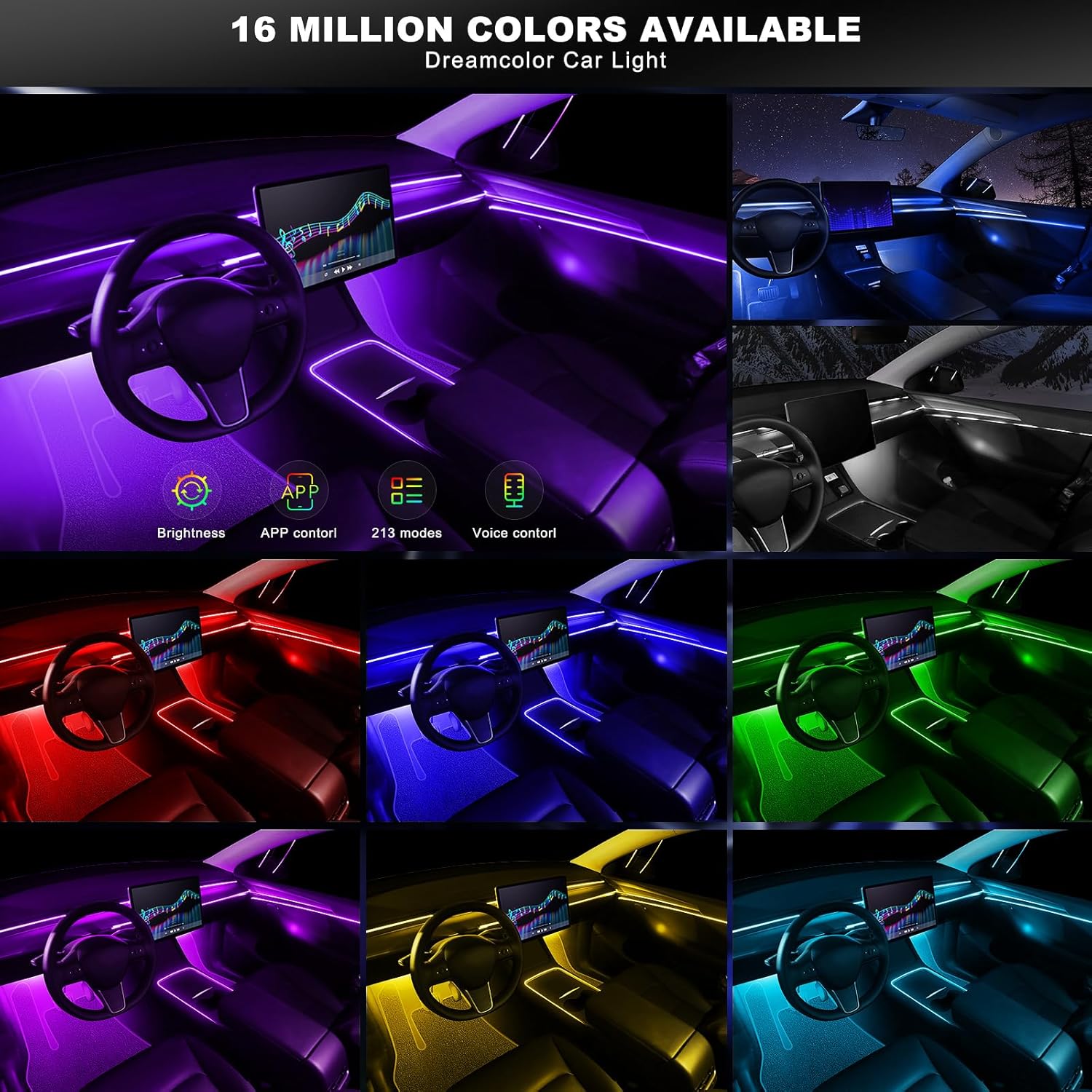 Acrylic Interior Car LED Strip Light with Wireless APP, RGB 14 in 1 with 175 inches 612 LEDs Fiber Optic Strip Lights for Car, Dual Zone Music Sync Neon Car Ambient Lighting Kits