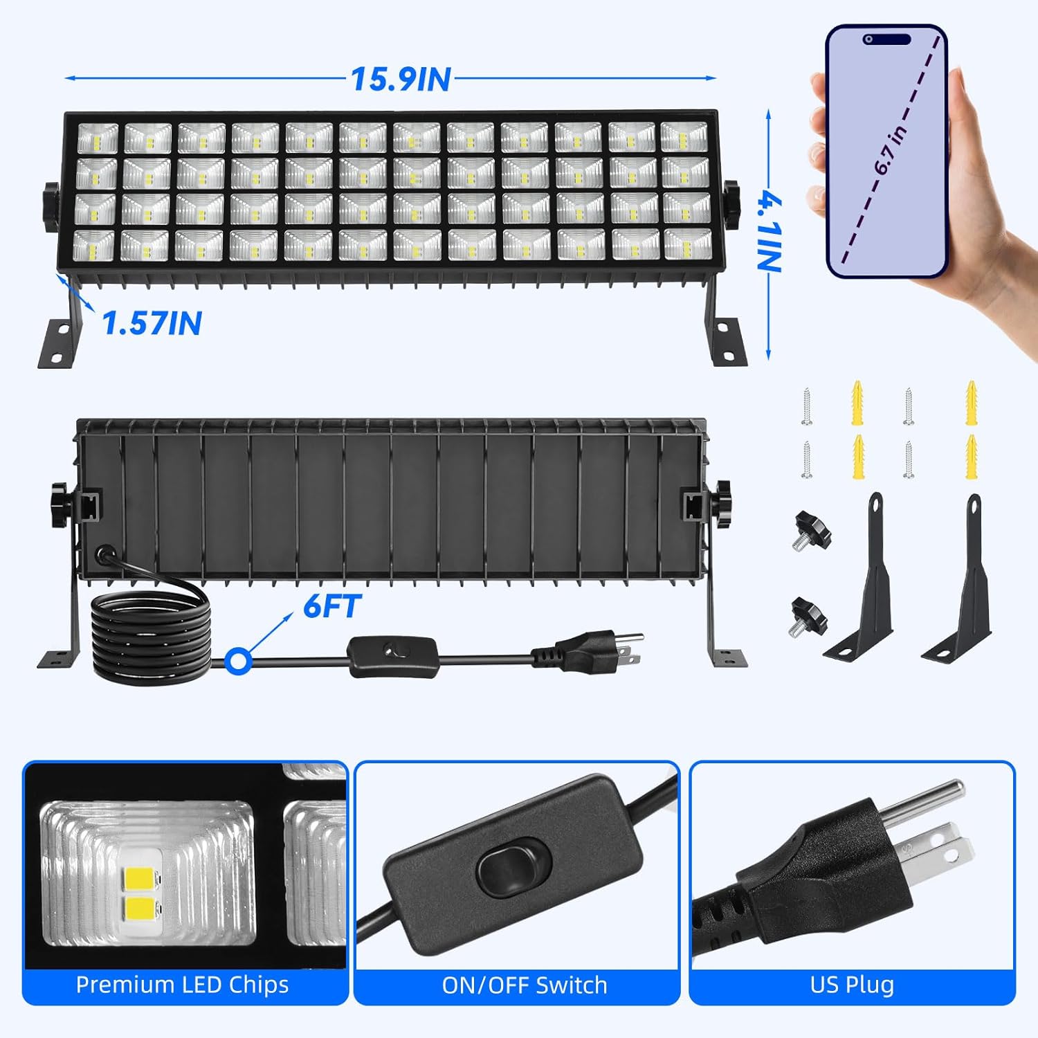 - Flexible and Easy Installation: Equipped with a 6 ft power cord and inline on/off switch, our garage lights offer placement flexibility. The plug-and-play installation is user-friendly, allowing you to set it up in minutes—great even for those without electrical experience