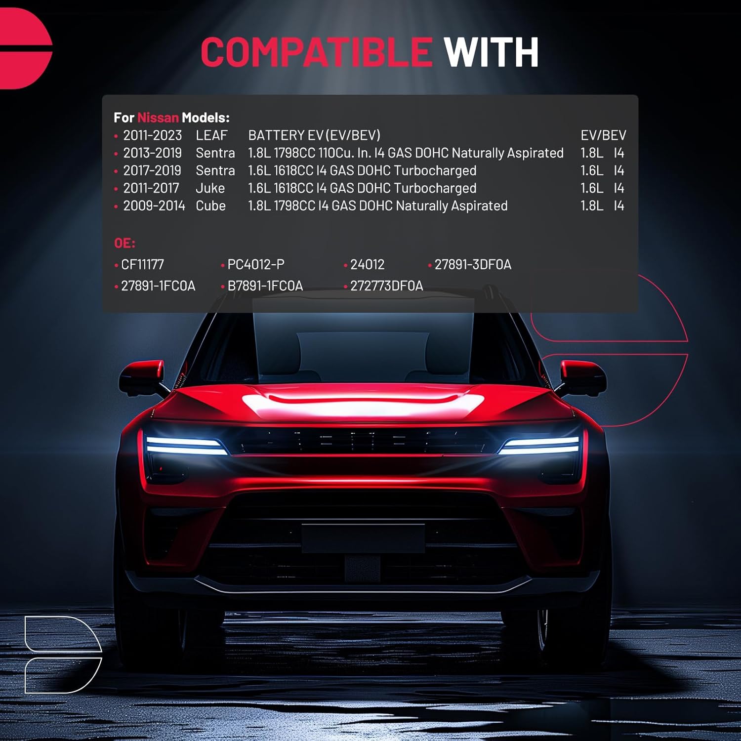 - [Vehicle Fitment] Compatible with Nissan LEAF 2011-2023, Sentra 2013-2019 1.8L l4, Sentra 2017-2019 1.6L l4, Juke 2011-2017 1.6L l4, Cube 2009-2014 1.8L l4