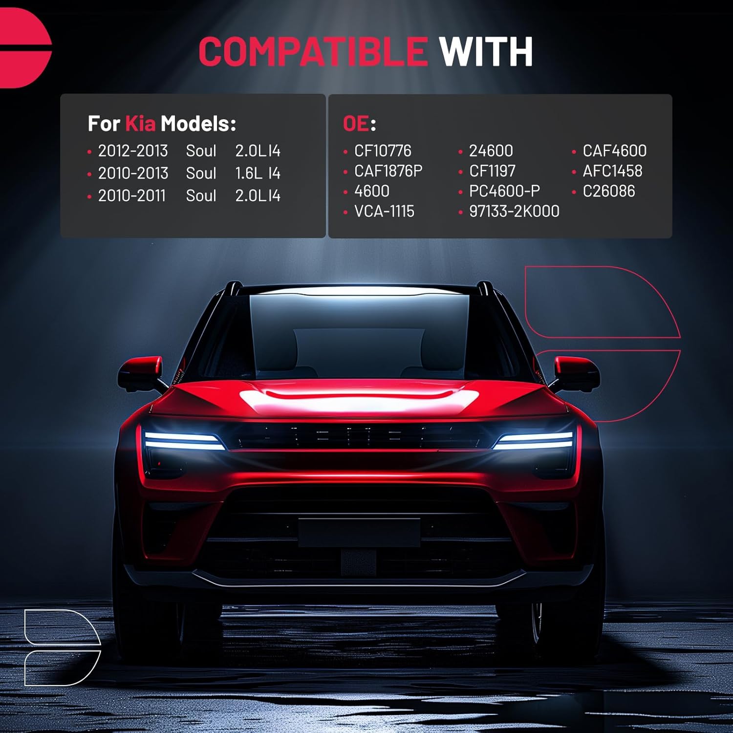 - [Vehicle Fitment] Compatible with Kia Soul 2010-2013 2.0L l4, Soul 2010-2013 1.6L l4
