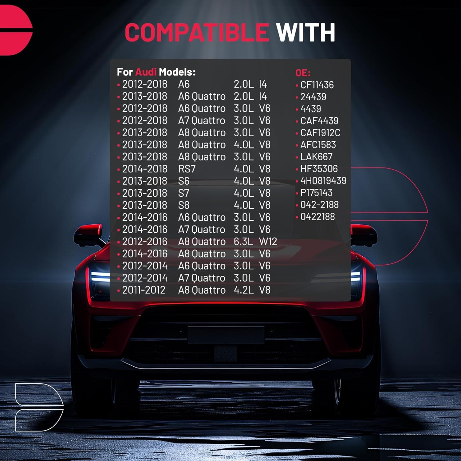 - [Vehicle Fitment] Compatible with Audi A6 2012-2018 2.0L l4, A6 Quattro/A7 Quattro 2012-2018 3.0L V6, A6 Quattro 2013-2018 2.0L l4, A8 Quattro 2013-2018 3.0L/4.0L V6, S6/S7/S8 2013-2018 4.0L V8, RS7 2014-2018 4.0L V8, A8 Quattro 2012-2016 6.3L W12, A6 Quattro/A7 Quattro 2012-2014 3.0L V6, A8 Quattro 2011-2012 4.2L V8, A6 Quattro/A7 Quattro/A8 Quattro 2014-2016 3.0L V6