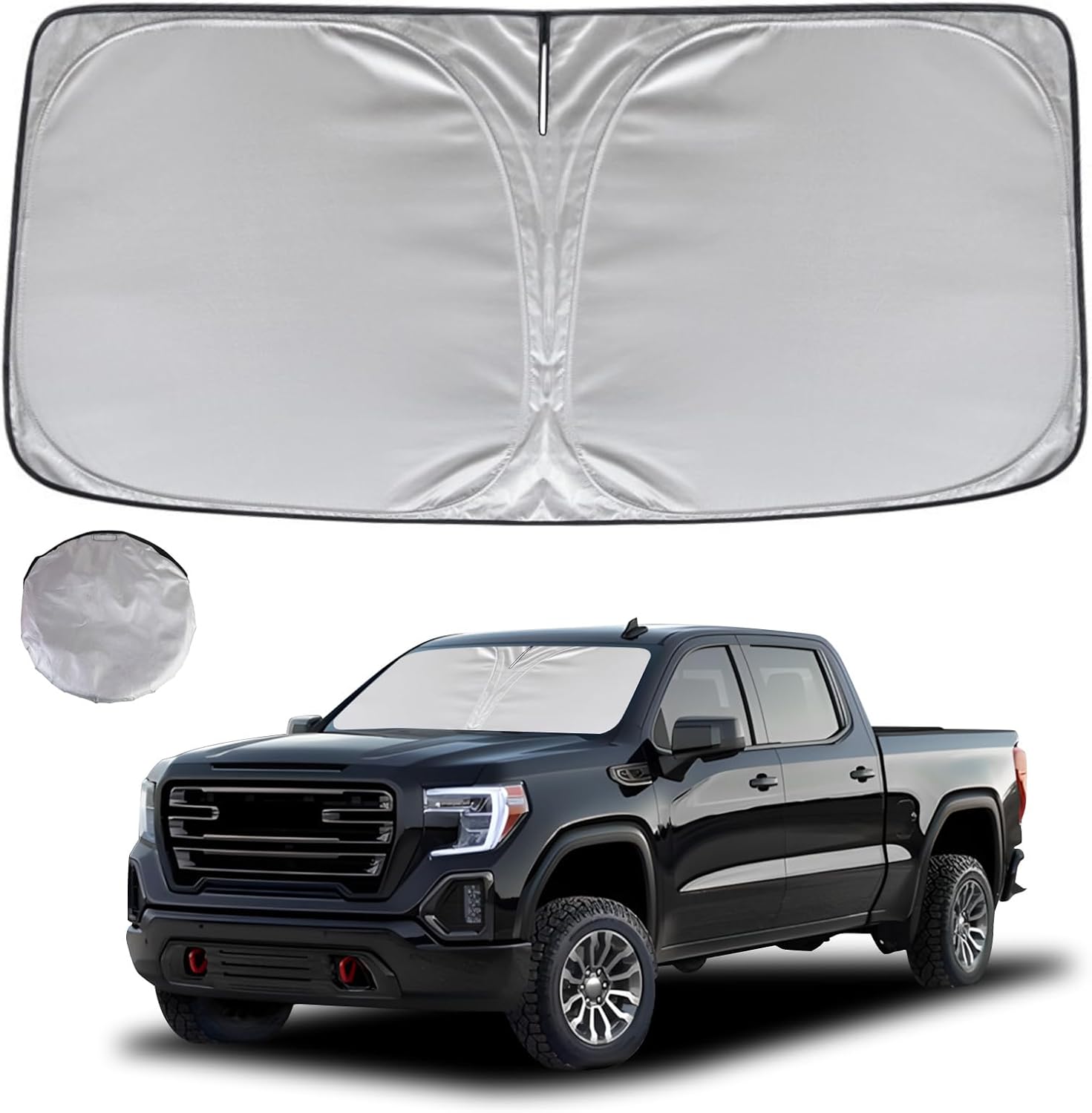 - KAYZT windshield sun shade is precise custom fit for 2019 2020 2021 2022 2023 2024 2025 2026 GMC Sierra 1500 2500 3500, Thoroughly covers every corner of the windshield, Tailored to accommodate rear view mirror, Ensuring a seamless and snug fit without obstruction, Must have car accessories for GMC Sierra 1500 2500 3500