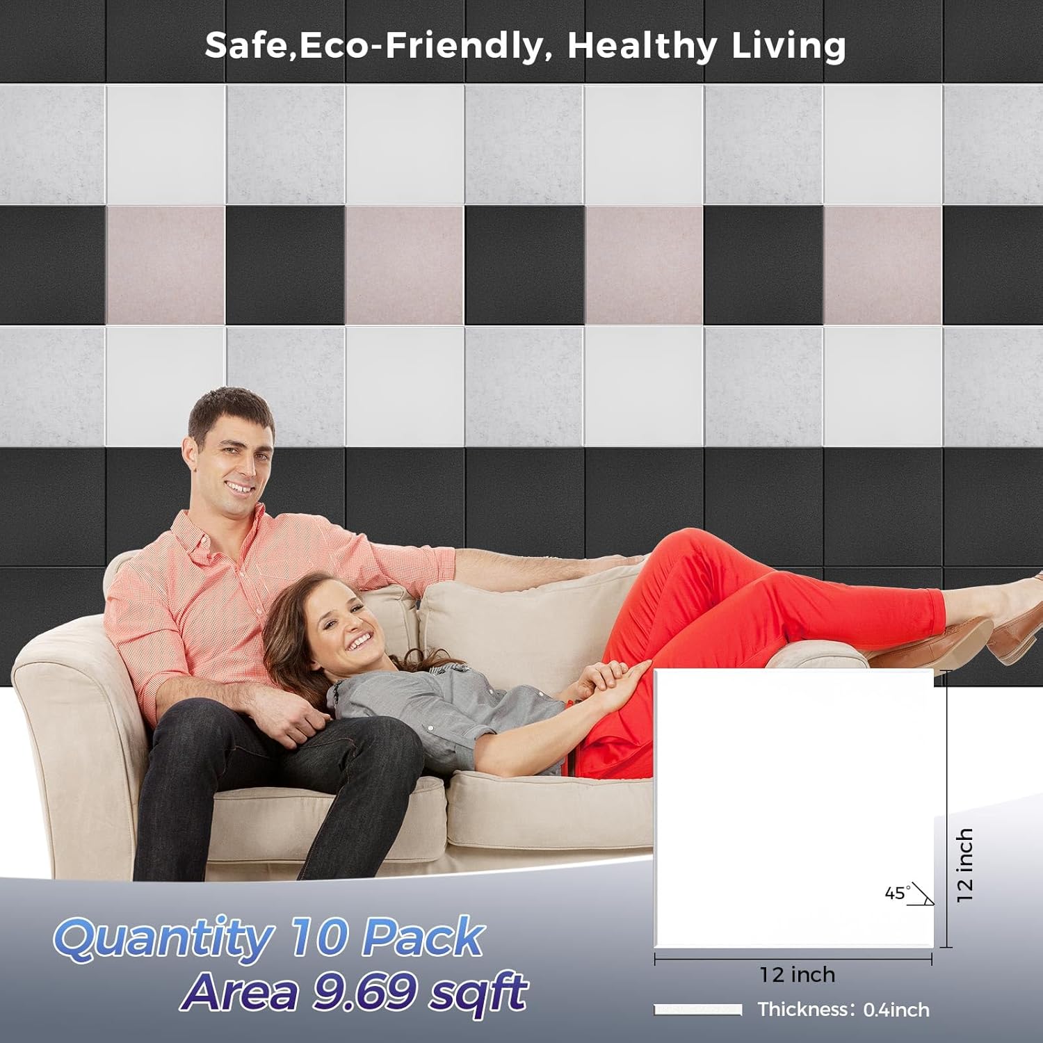 10 pcs 165dtex Microfiber Acoustic Panels ,Self-Adhesive Soundproof Wall Panels, 12 x 12 x 0.4 in Sound Proof Foam Panels for Walls, High Density, Noise Dampening Panels for Home Studio(White)