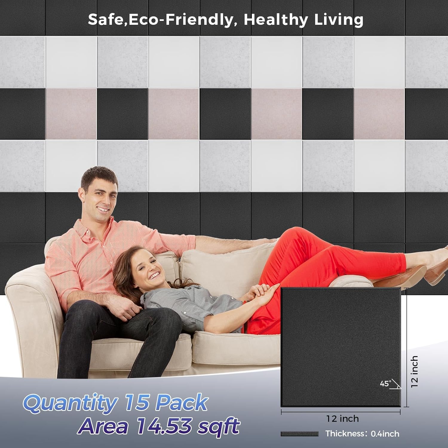 15 pcs 165dtex Microfiber Acoustic Panels ,Self-Adhesive Soundproof Wall Panels, 12 x 12 x 0.4 in Sound Proof Foam Panels for Walls, High Density, Noise Dampening Panels for Home Studio(Black)