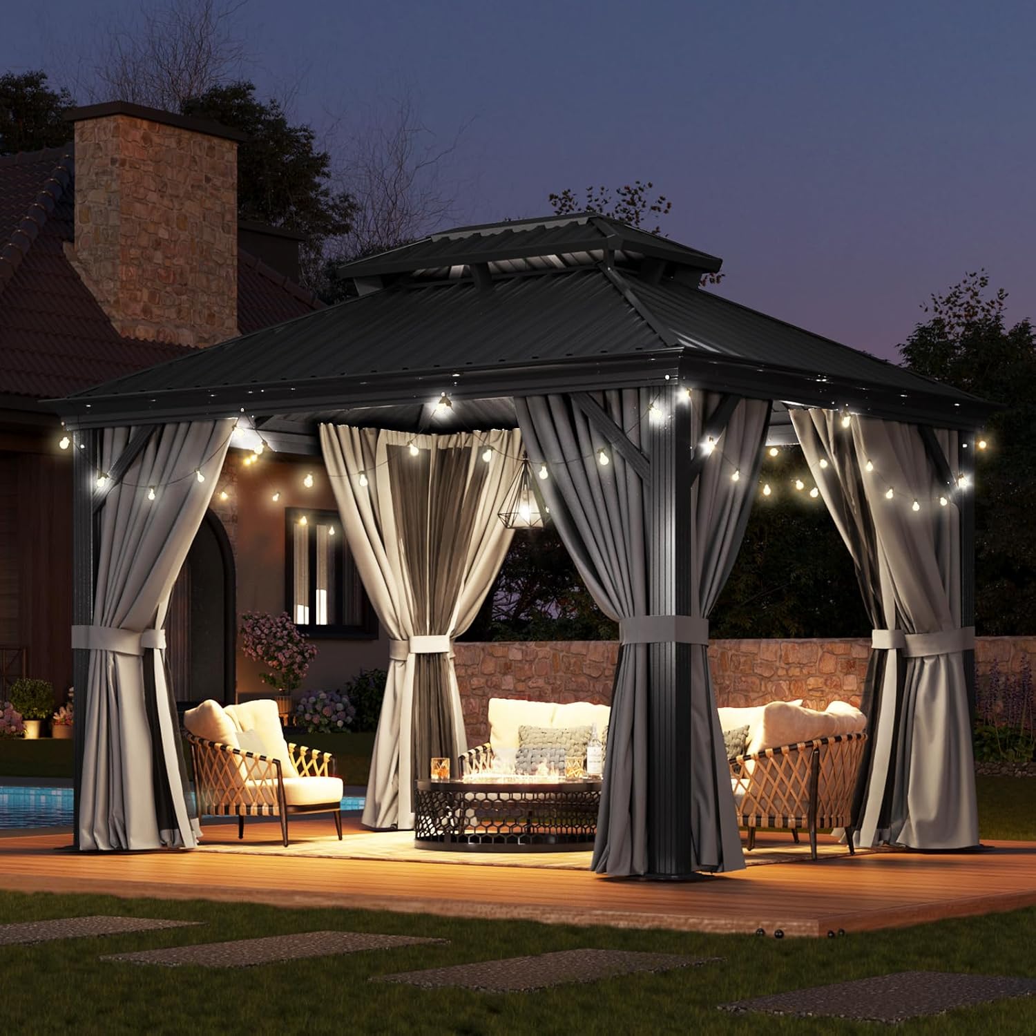 - Enhanced Ambiance with Hooks: Equipped with 3 heavy-duty hooks, each supporting up to 20 lbs, for hanging of lights, fans, or decorations. Transform the hardtop gazebo into the perfect setting for evening gatherings or special events with effortless charm