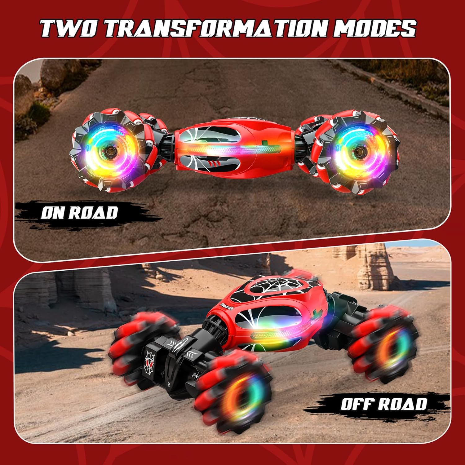 - Master Extreme Stunt Driving: Unleash limitless stunts with our spider gesture-sensing stunt car ! experience 360° spins, diagonal drifts, dual-side driving, and precise forward/backward movements,Kids can seamlessly switch between the Gravity Watch R/C and 2.4Ghz R/C for multi-directional control.