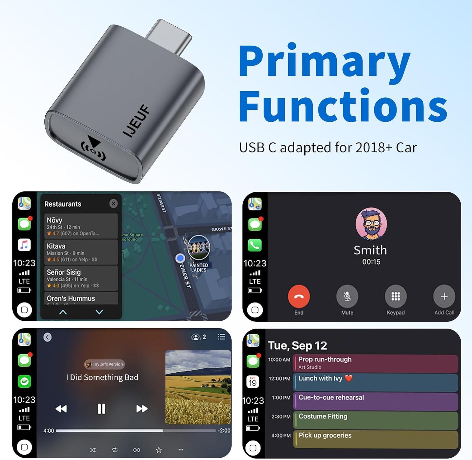 - đăLightning-Fast Wireless Connectionă Achieve 10-second initial setup and 3-second auto-reconnect with our Apple CarPlay wireless adapter. Equipped with 5.8GHz WiFi and Bluetooth 5.3, it delivers 5x faster transmission than standard adapters. Control navigation, music, calls, and messages seamlessly via Siri or touchscreen, buttons, or knobsâzero daily lag ensures safer driving. (Your Cars must support OEM wired CarPlay and USB C Port)