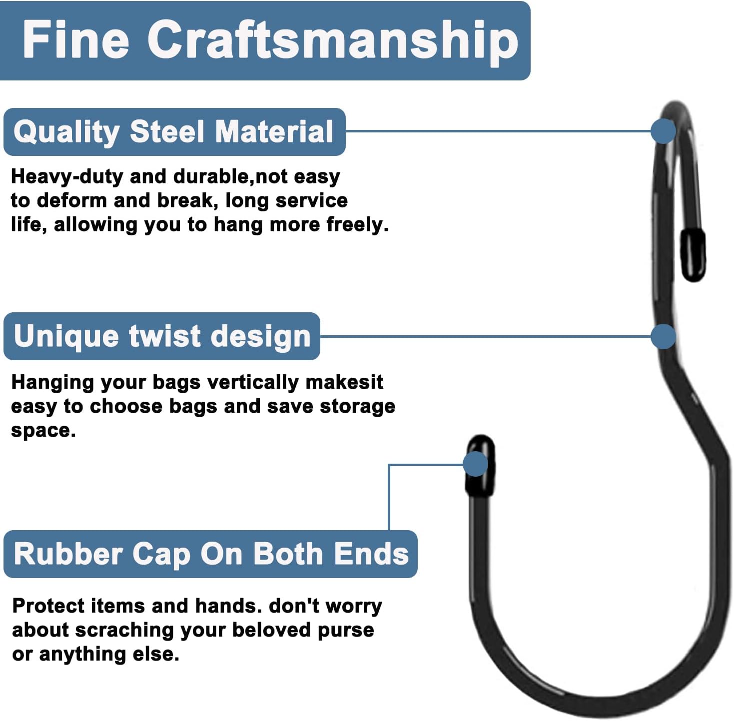 - 【Improved Design S Hook】These purse hooks feature a unique twisted design, optimizing space while providing a secure hold for your items. The S-hook design allows for easy organization and accessibility.
