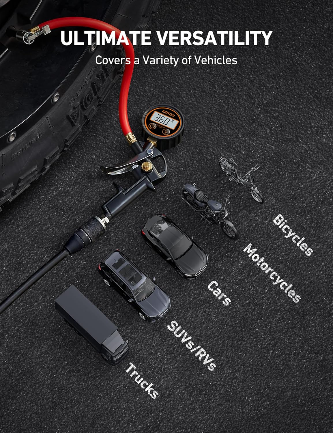 - ULTIMATE VERSATILITY: This gauge features a versatile 3-250PSI pressure range, which ensures accurate pressure measurement across all vehicle types including bicycles, motorcycles, passenger vehicles, and commercial trucks.