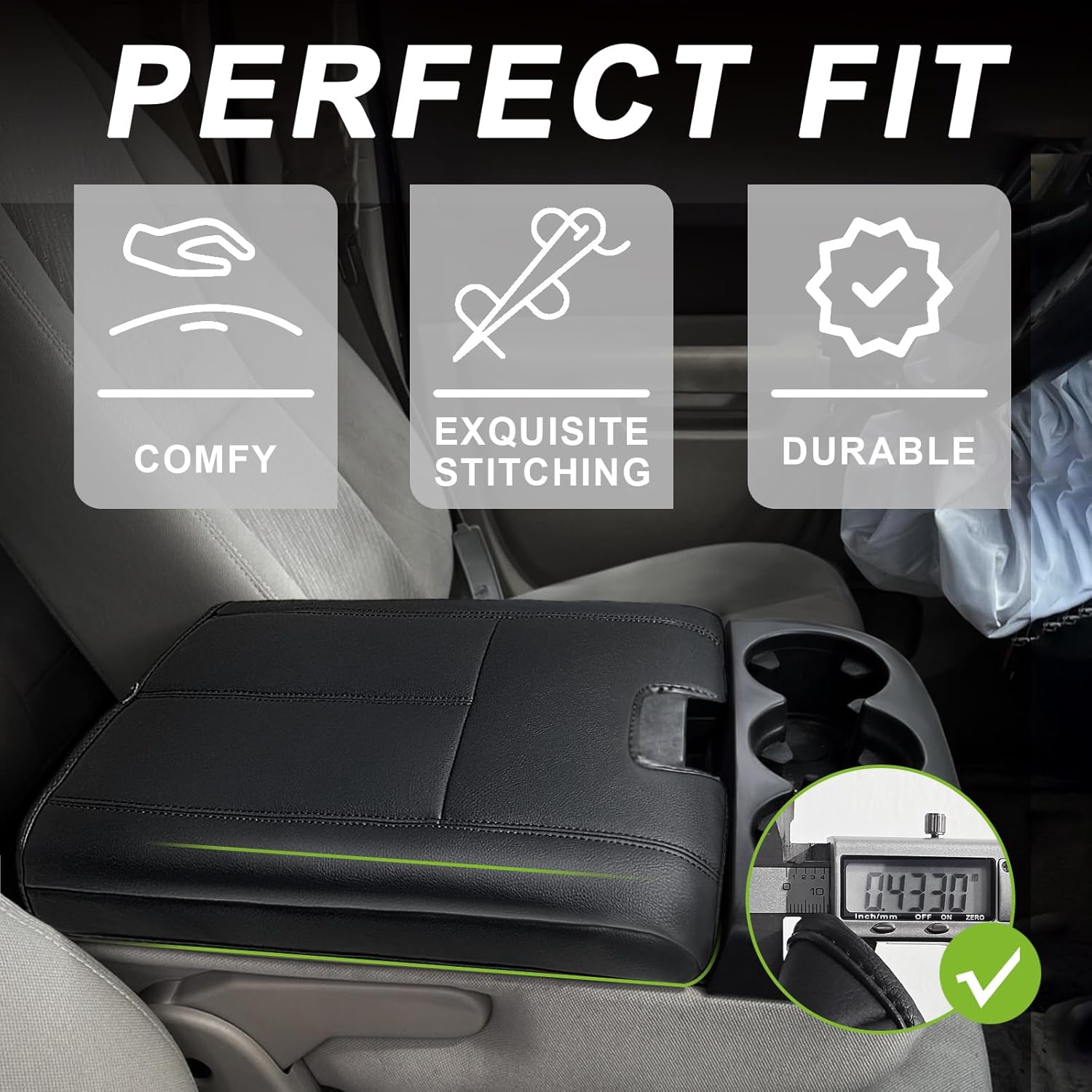 Muslogy Center Console Armrest Cover Compatible with Chevy Silverado/Tahoe & GMC Sierra/Yukon 2007-2013 Comfort Armrest Pad Arm Rest Cushion Vegan Leather Protector Regular Thick(Jump Seat ONLY)