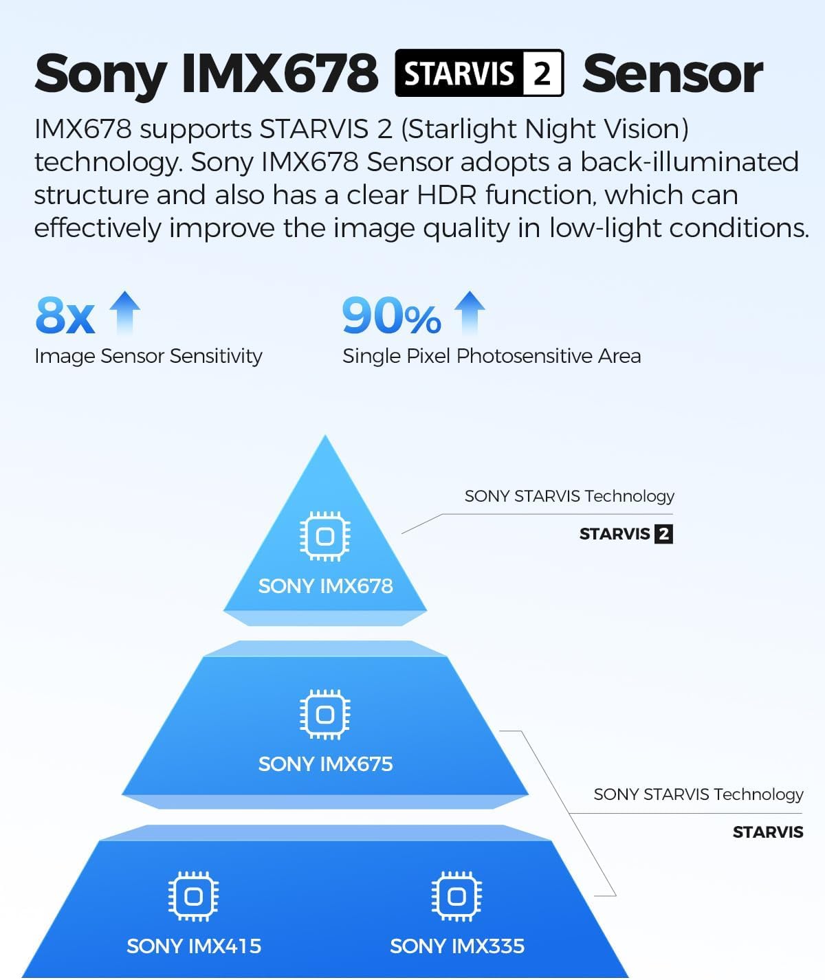 - [Sony IMX678 Starvis 2 Sensor] Experience superior night vision with this mirror dash cam's cutting-edge STARVIS 2 technology. The 7-layer glass lens and IMX678 sensor absorb 60% more light than standard dashcams, transforming dark commutes into daylight-like visibility.