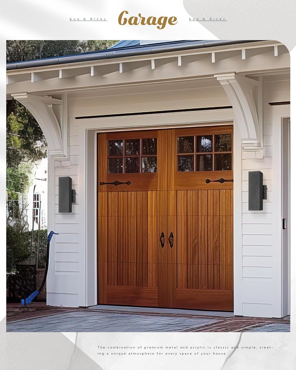 Ken & Ricky 2 Pack Dusk to Dawn Outdoor Lighting, Modern Exterior Lighting Fixtures, Aluminum Front Porch Light, Black Outdoor Wall Sconce with Glass Cover, KR3324-W-2PK-B
