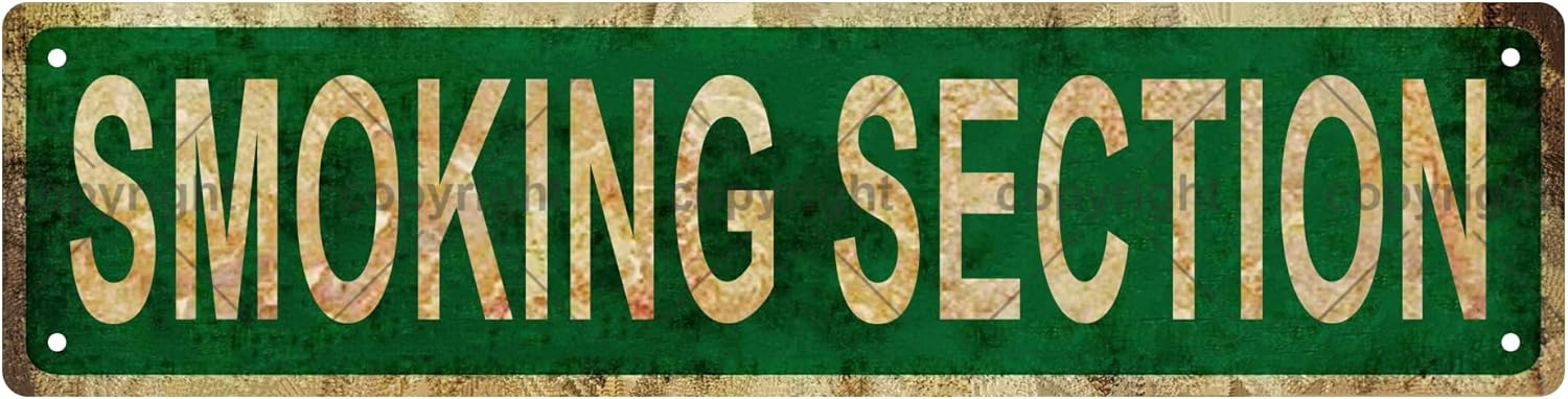 SMOKING SECTION Vintage Metal Tin Sign, Street Sign, Home Decor, Room Decor, Wall Decor, Bathroom Decor, Bar Decor, Cafe Decor, Garage Decor, 16 x 4 Inch