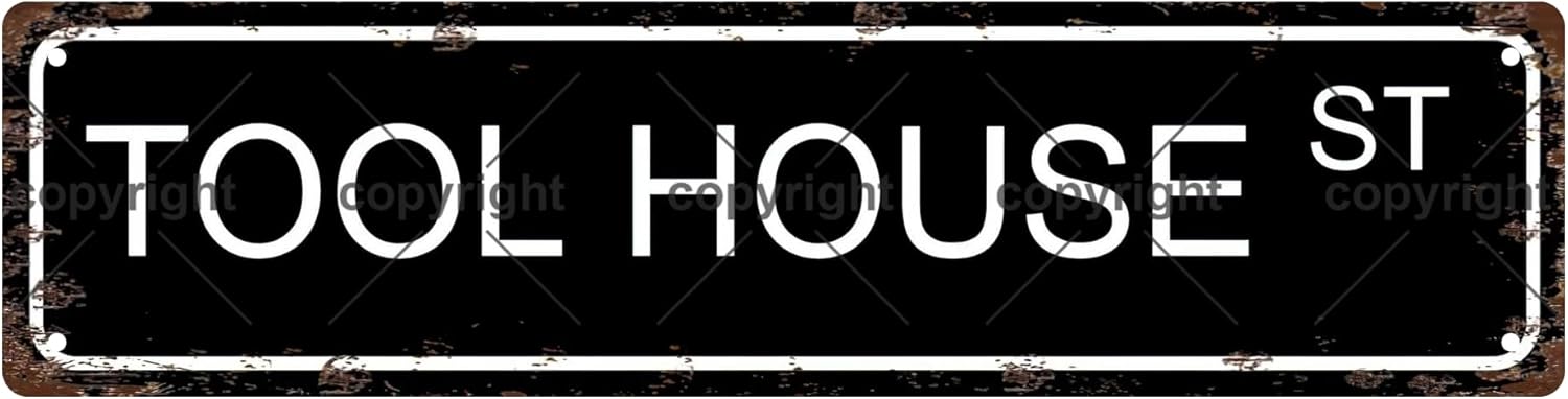 TOOL HOUSE ST Vintage Metal Tin Sign, Street Sign, Home Decor, Room Decor, Wall Decor, Bathroom Decor, Bar Decor, Cafe Decor, Garage Decor, 16 x 4 Inch
