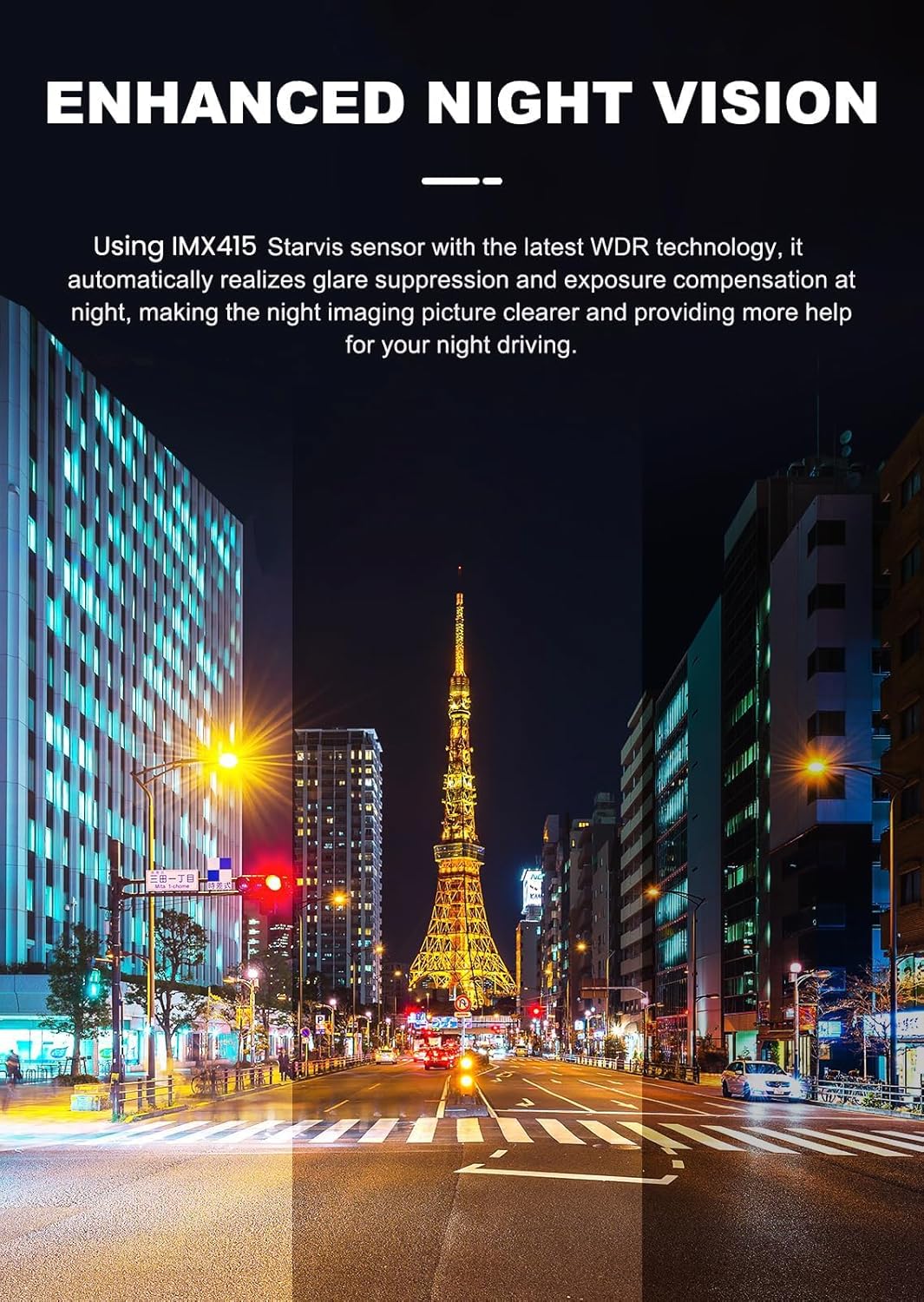 - [Superior Night Vision – Drive Confidently in the Dark] With a Starvis sensor and WDR technology, this dash camera for cars enhances night vision, capturing sharp details even in low-light conditions. The ultra-large aperture improves brightness, reducing glare and dark spots. Whether on dim streets or highways, this camera ensures clear recordings day and night