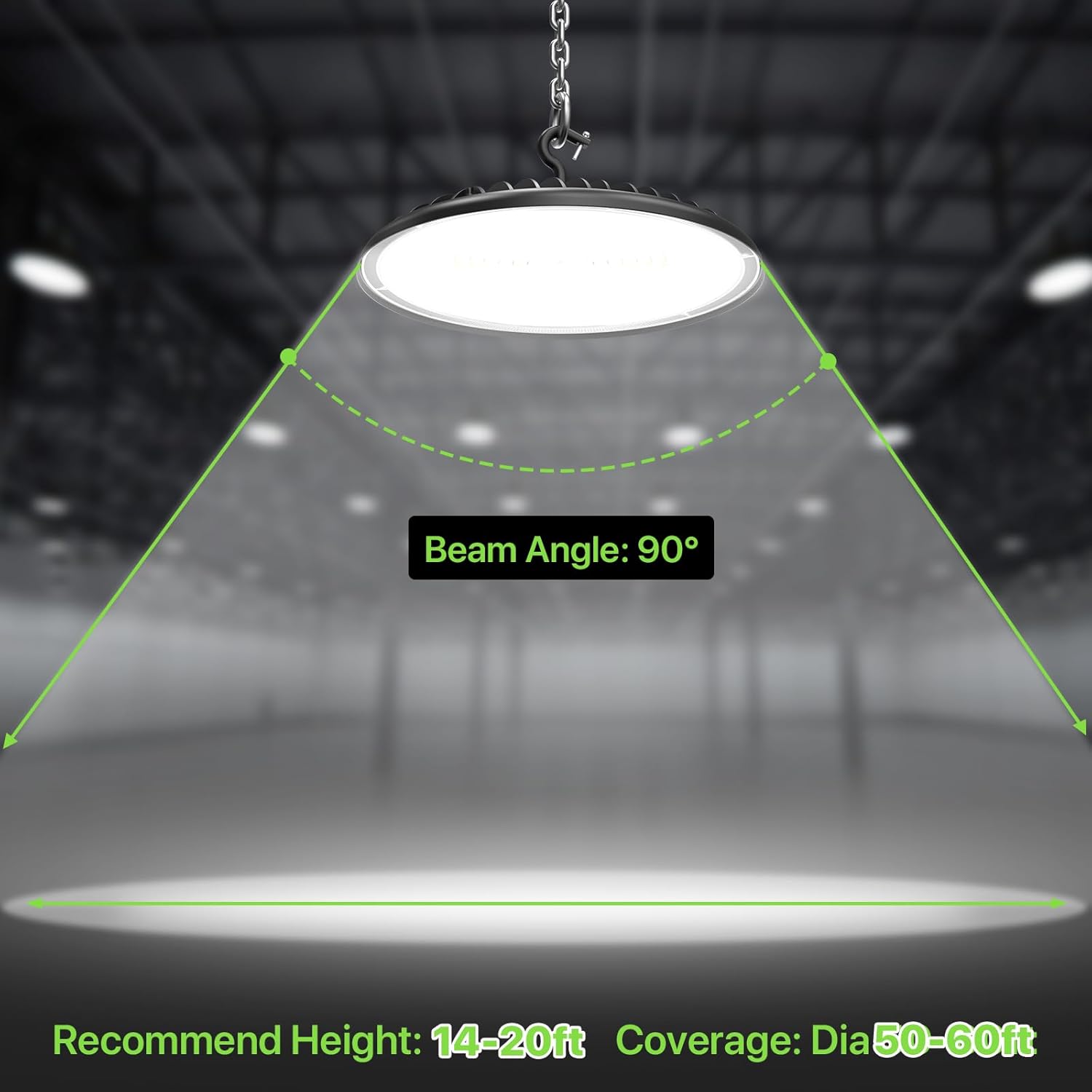 - Brighter & Energy Saving: This UFO high bay LED light provides 28000lm high brightness with efficacy up to 140lm/w, making a wider and clearer illumination area while consuming at least 85% less energy compared to traditional lights or sodium bulbs. Ideal for use in commercial and industrial lighting