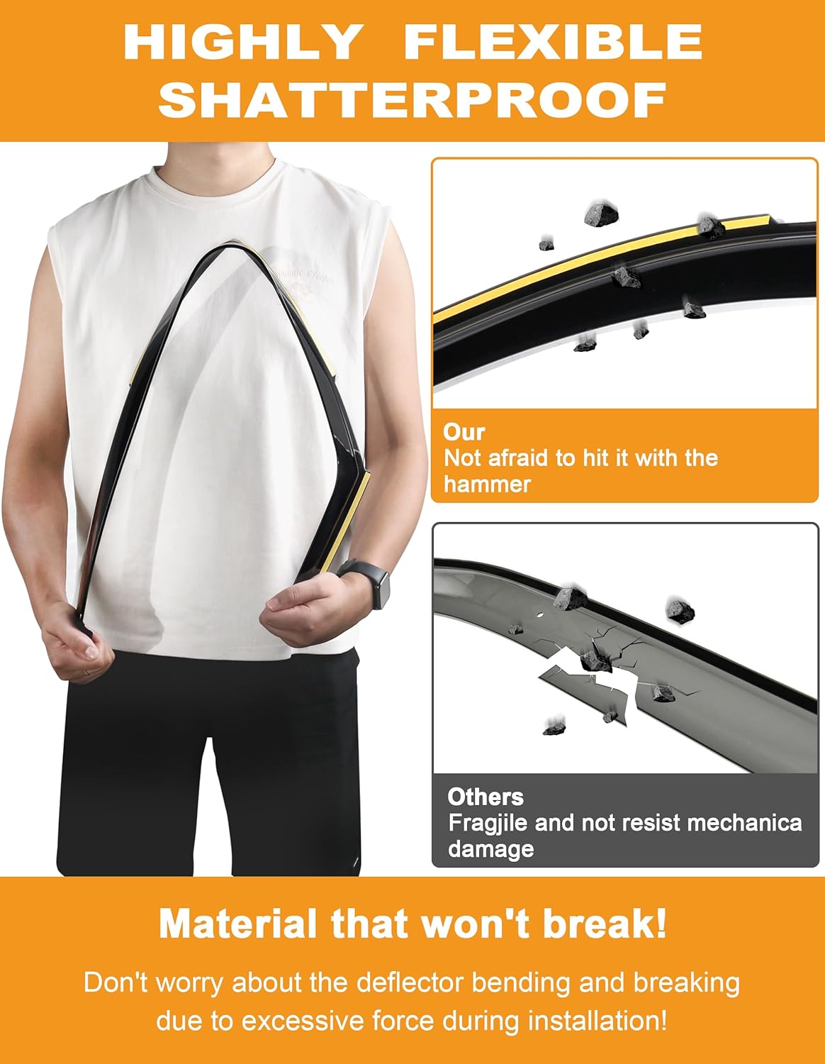 - 【Extra-Durable Polycarbonate】Deejecsun Window Deflectors made of long-lasting shatterproof material, offer ultimate protection against heat, wind, rain, and environmental damage, ensuring a safe and comfortable journey.