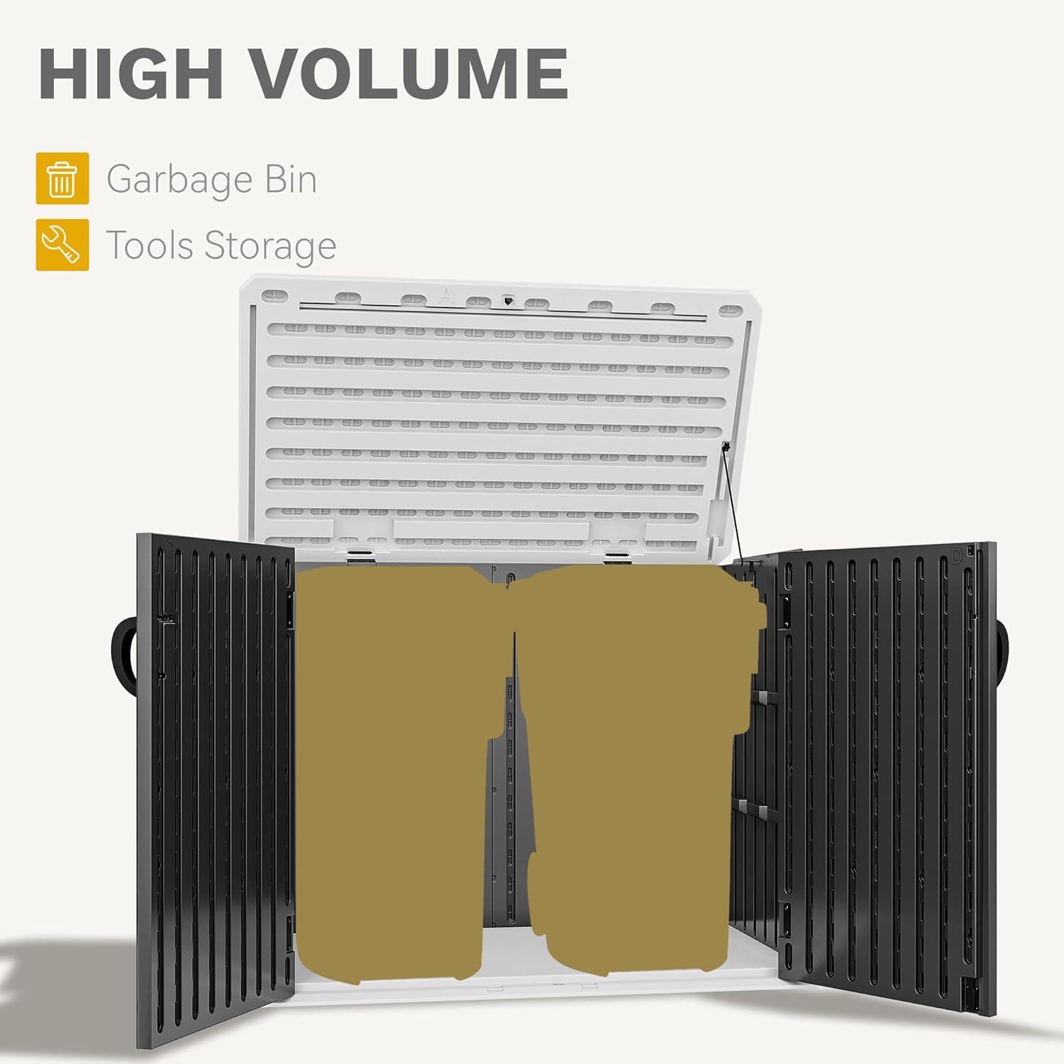 - Robust Construction: Boasting double-wall resin panels treated with cutting-edge technology, this outdoor storage solution offers enhanced wind and impact resistance; Its sturdy build ensures your valuable tools and equipment remain secure, without bending or puncturing