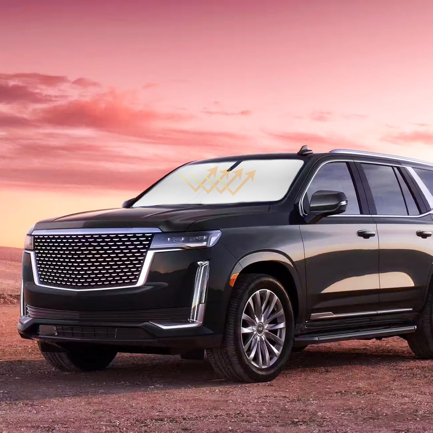 - 【Vehicle Specific】Our Windshield Shade Cover custom fit for Cadillac Escalade 2021-2024 2025 2026 ,Full covered your windshield,No Gap,100% Perfect fit. The precise fit design and reinforced steel ring are sufficient to allow the sun shade to precisely fit the front window without the need for suction cups to hold it in place, effectively protecting your car from the sun's rays.