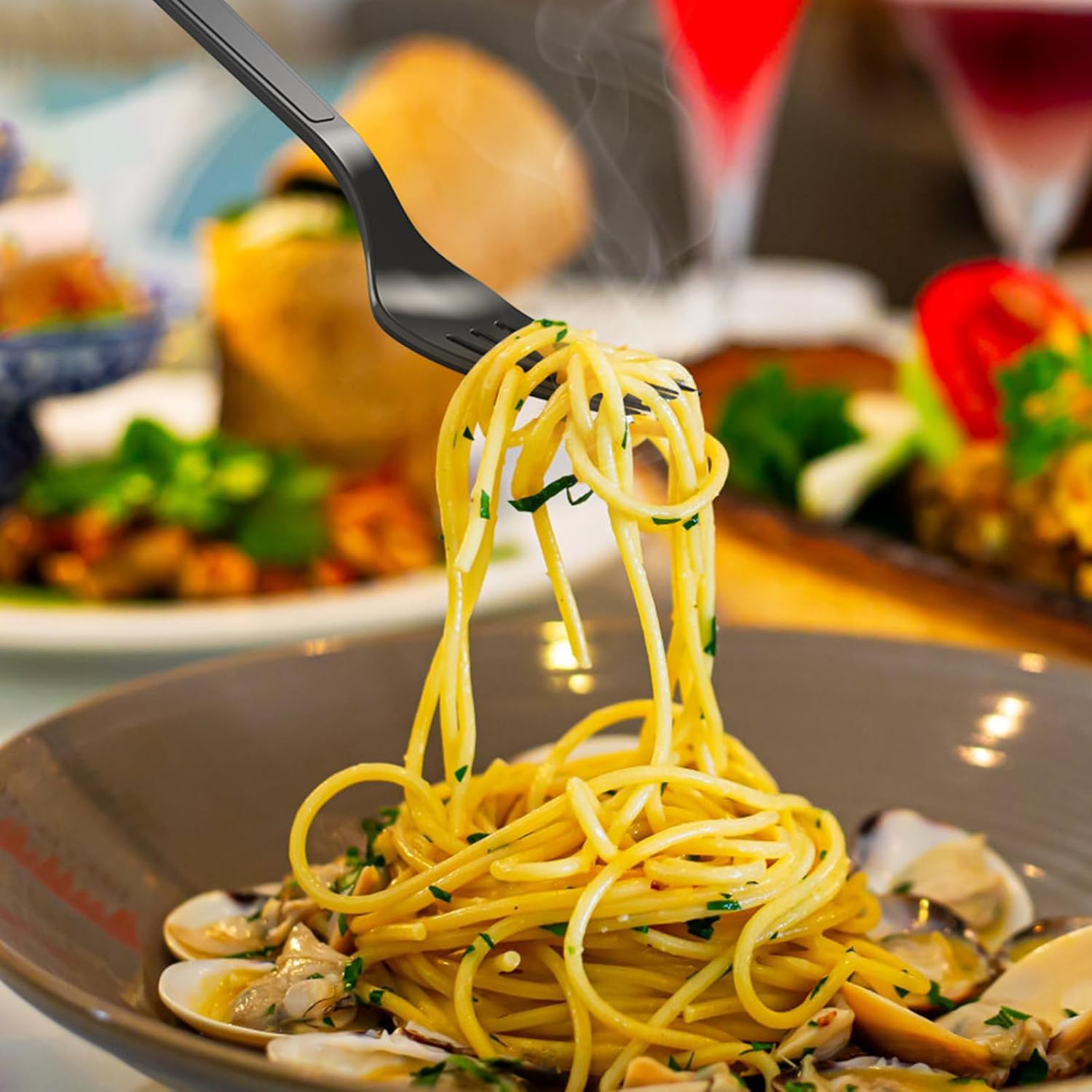 - 【Premium Material】: Dealusy black plastic forks heavy duty are made of food grade polystyrene, total BPA free and toxin free for your healthy meals.