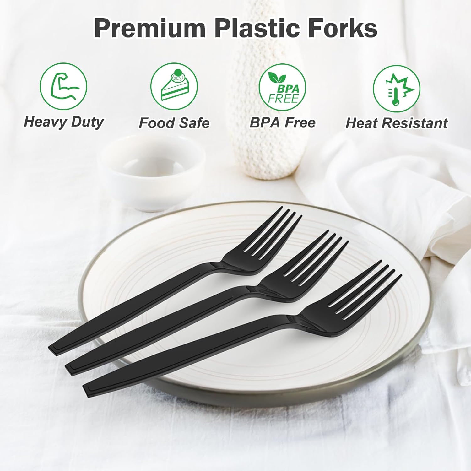 360 Count Extra Heavy Duty Black Plastic Forks Disposable, BPA-Free, Heat Resistant, Solid and Durable Disposable Forks Bulk, Premium Plastic Forks heavy duty for Party Supply