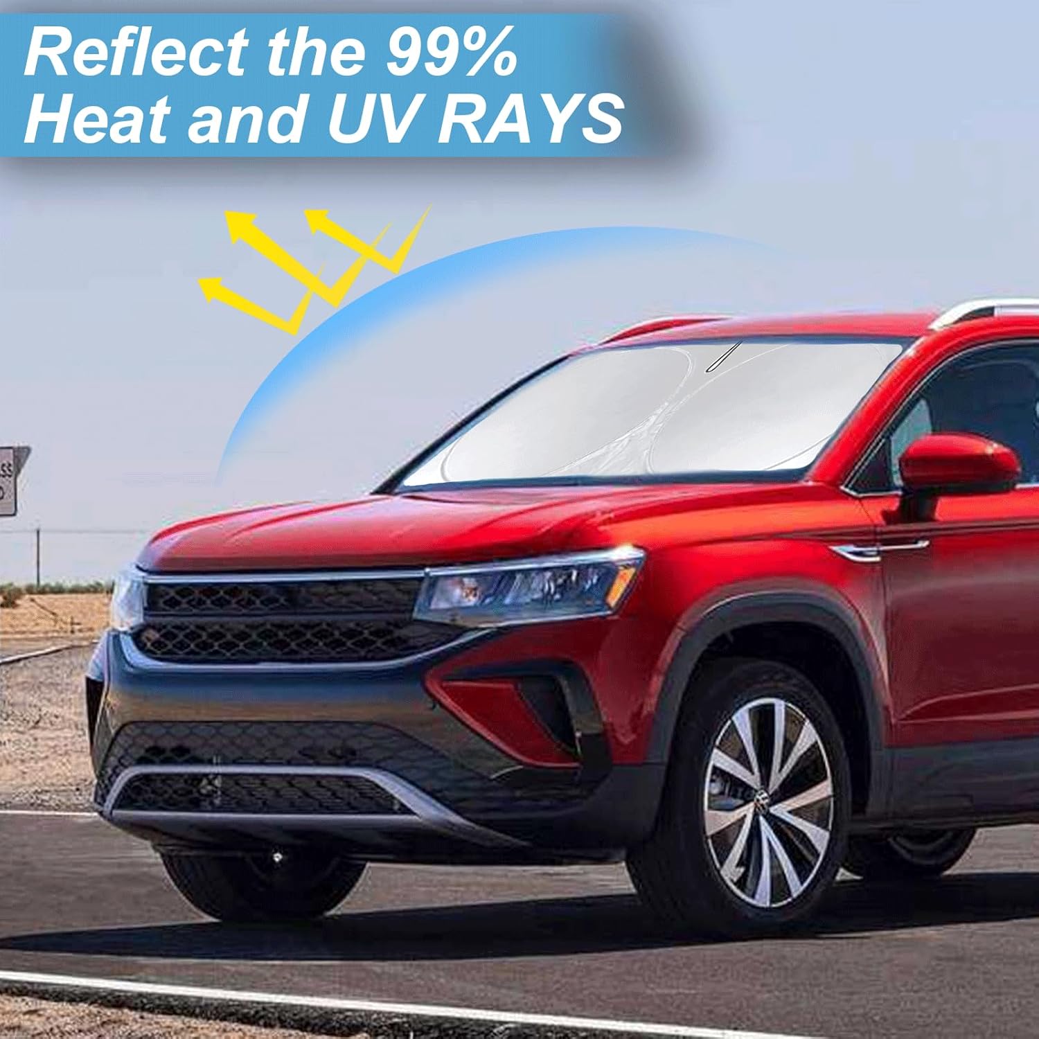 - [CUSTOM-FIT FRONT WINDSHIELD SUNSHADE] Automotive windshield sun shade is Specifically designed,which for VW Volkswagen Taos 2022 2023 2024 2025 2026 accessories. We have several size of car sunshade. Please measure your car size and refer to our size before your purchase. Once installed it won't have gaps, sags or slumps like other car sun shade windshield