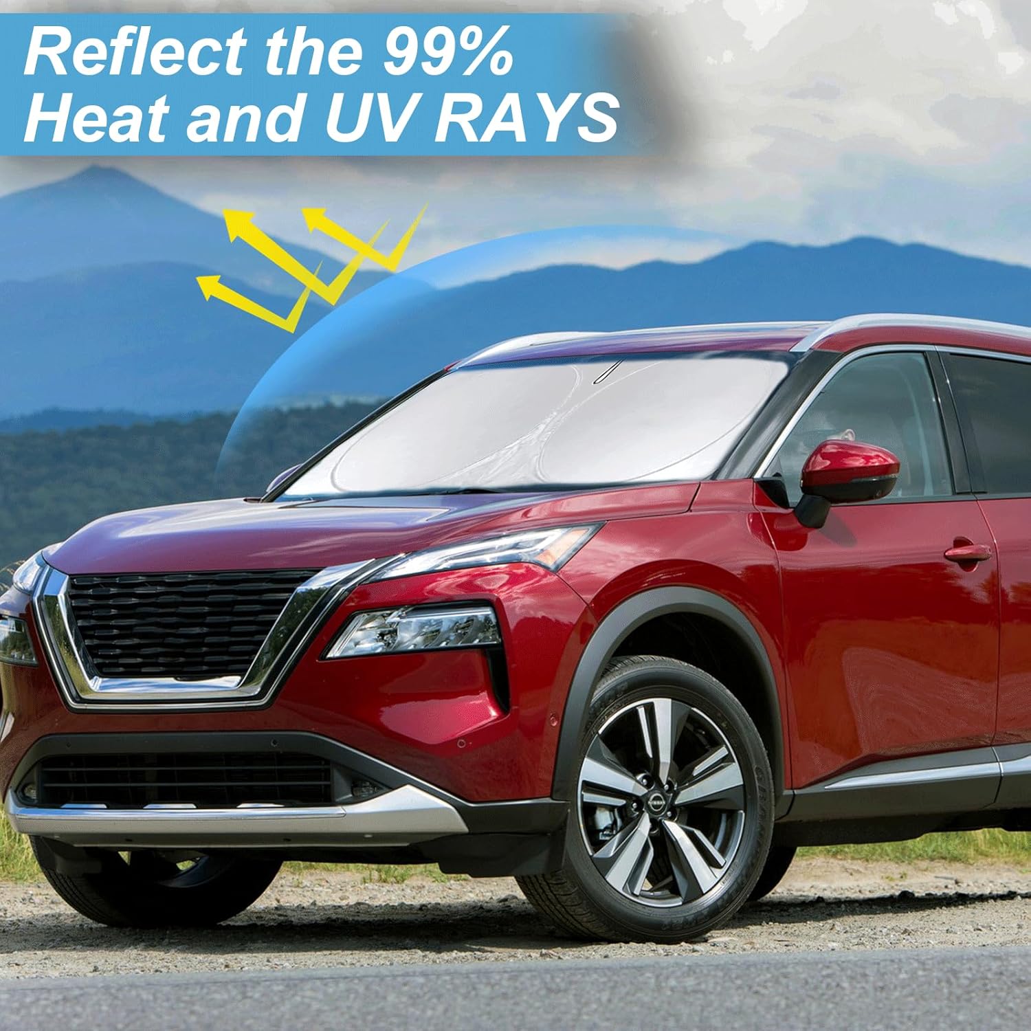 - [CUSTOM-FIT FRONT WINDSHIELD SUNSHADE] Automotive windshield sun shade is Specifically designed,which for 2023-2024 2025 Nissan Rogue (NOT for Rogue Sport & 2021 Rogue 3rd Gen. T33) Window Car Shades Shield accessories. We have several size of car sunshade. Please measure your car size and refer to our size before your purchase. Once installed it won't have gaps, sags or slumps like other car sun shade windshield