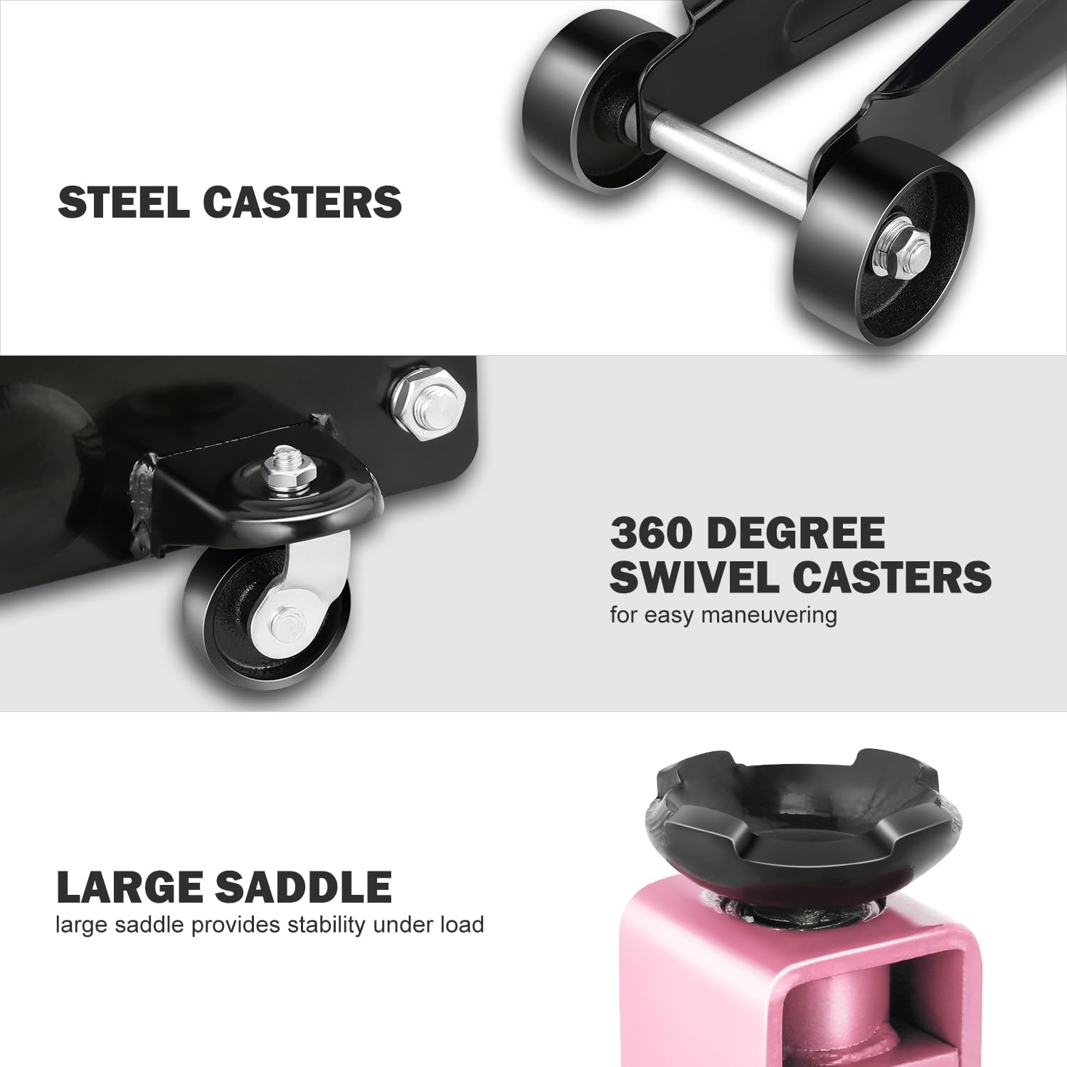 DNA MOTORING 3 Ton Low Profile Floor Jack, 3 tons (6000 lbs) Capacity Fast Lift Hydraulic Trolley Service/Floor Jack, 7.7 "-21" Lifting Range, Pink, TOOLS-00674-PK