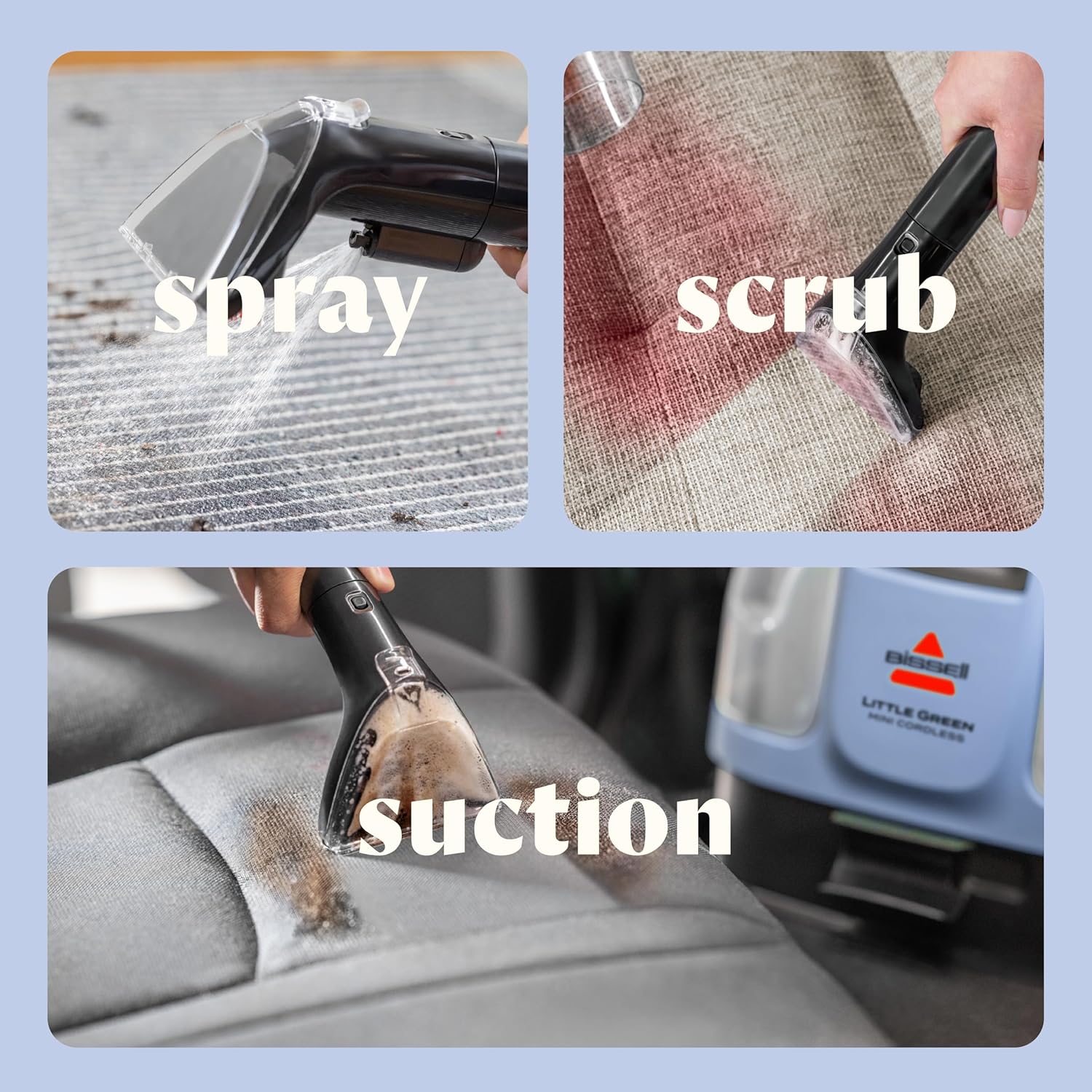 BISSELL Little Green Mini Cordless Portable Carpet and Upholstery Deep Cleaner, Car/Auto Detailer, with HydroRinse Self-Cleaning Tool and 4" Tough Stain Tool, Limited Edition Color Lake, 4015L