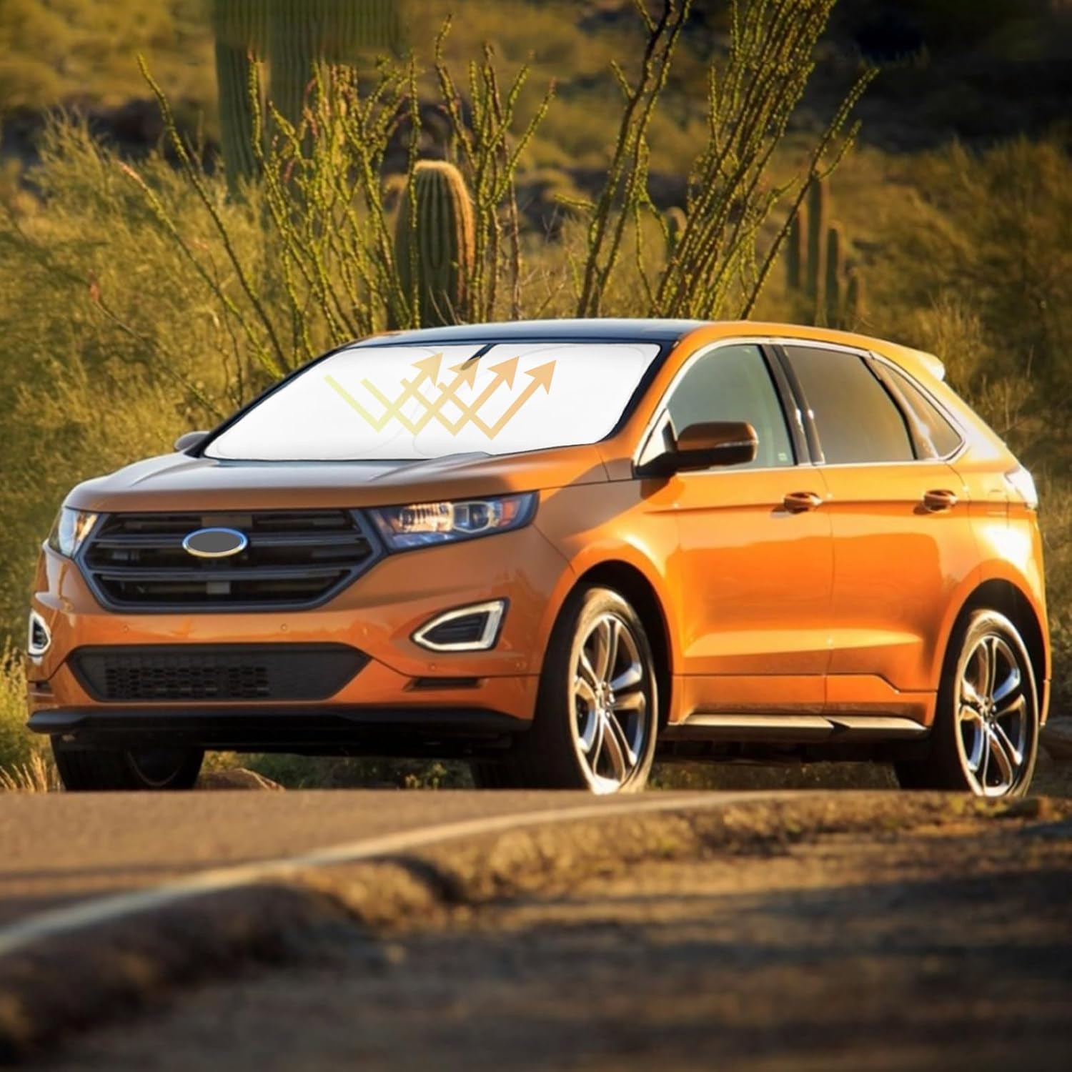 - 【Vehicle Specific】Our Windshield Shade Cover custom fit for 2007-2013 2014 Ford Edge Accessories , Base, Sport, Hybrid, A-Spec SUV Accessories,Full covered your windshield,No Gap,100% Perfect fit. The precise fit design and reinforced steel ring are sufficient to allow the sun shade to precisely fit the front window without the need for suction cups to hold it in place, effectively protecting your car from the sun's rays.
