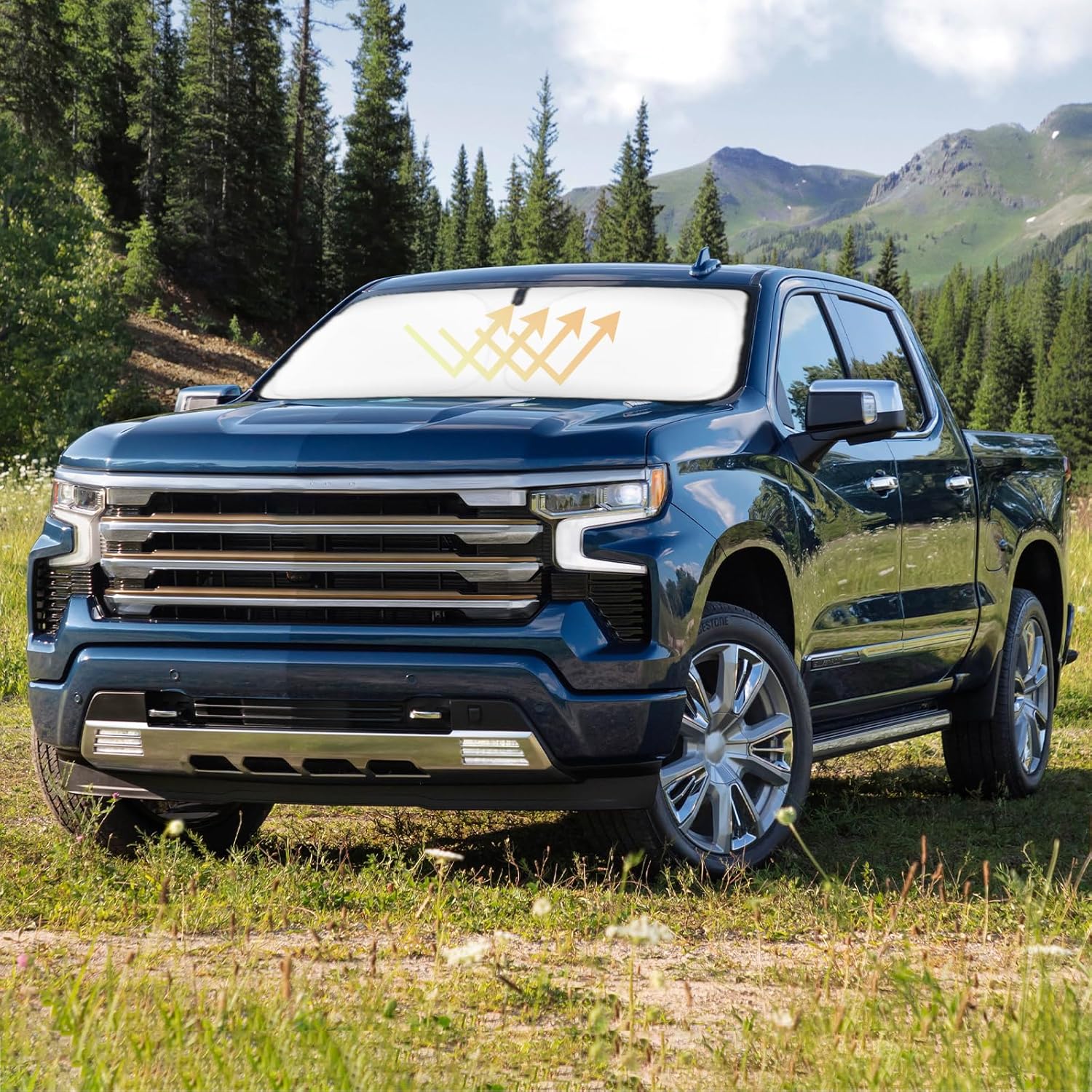 Sunshade Cover for Chevy Silverado 1500 Windshield Sun Shade for 2019-2024 2025 2026 Chevy Silverado 1500, Regular cab, Crew cab, Double Cab 2Dr 4Dr Window Shields Sun Visor Protector Blocks UV Rays