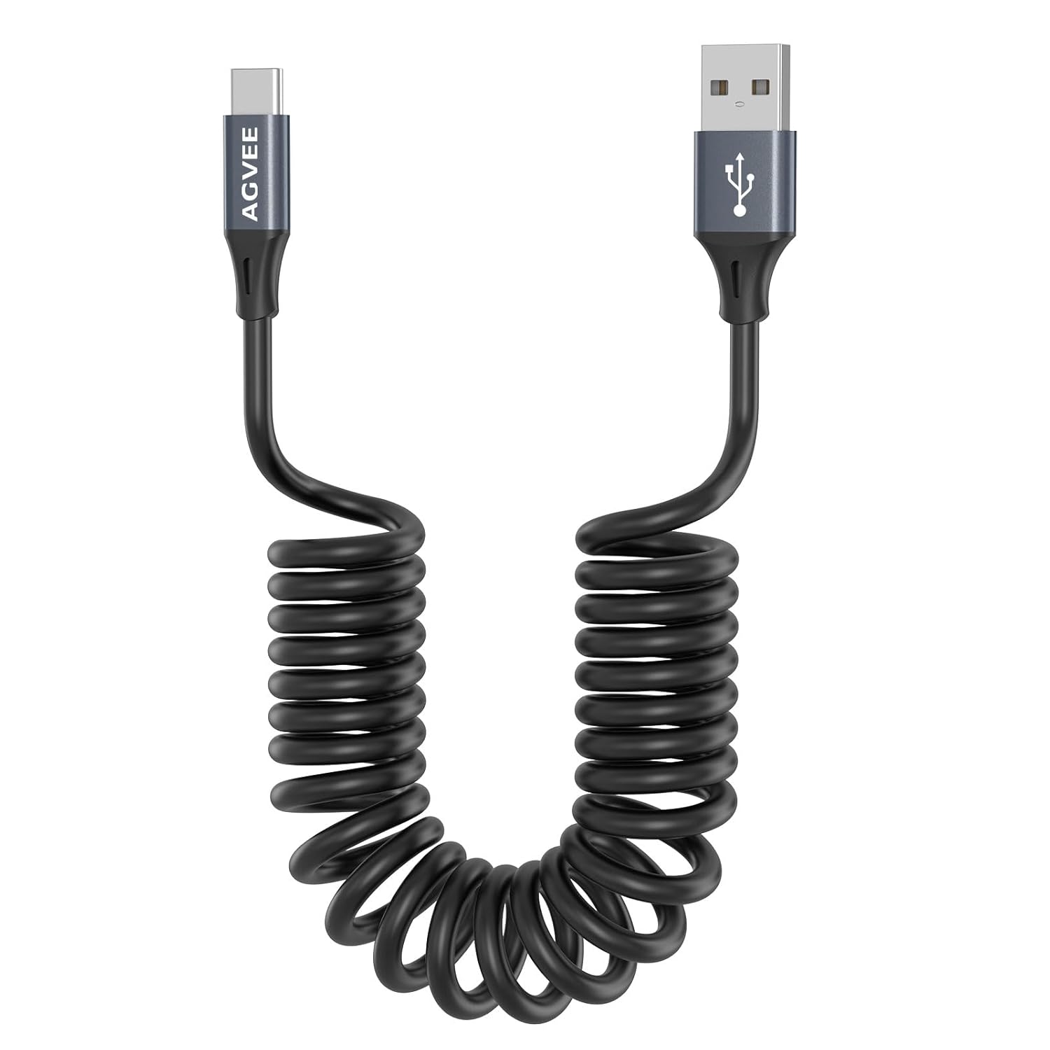 AGVEE 5ft Coiled Short USB to USB-C Charging Cable [USB-IF Certified] 3A Fast Charger Cord in Car for iPhone 16/15 CarPlay, Galaxy S25 S24 S23 S22 S21 S10 S9 S8, Google Pixel, Dark Gray