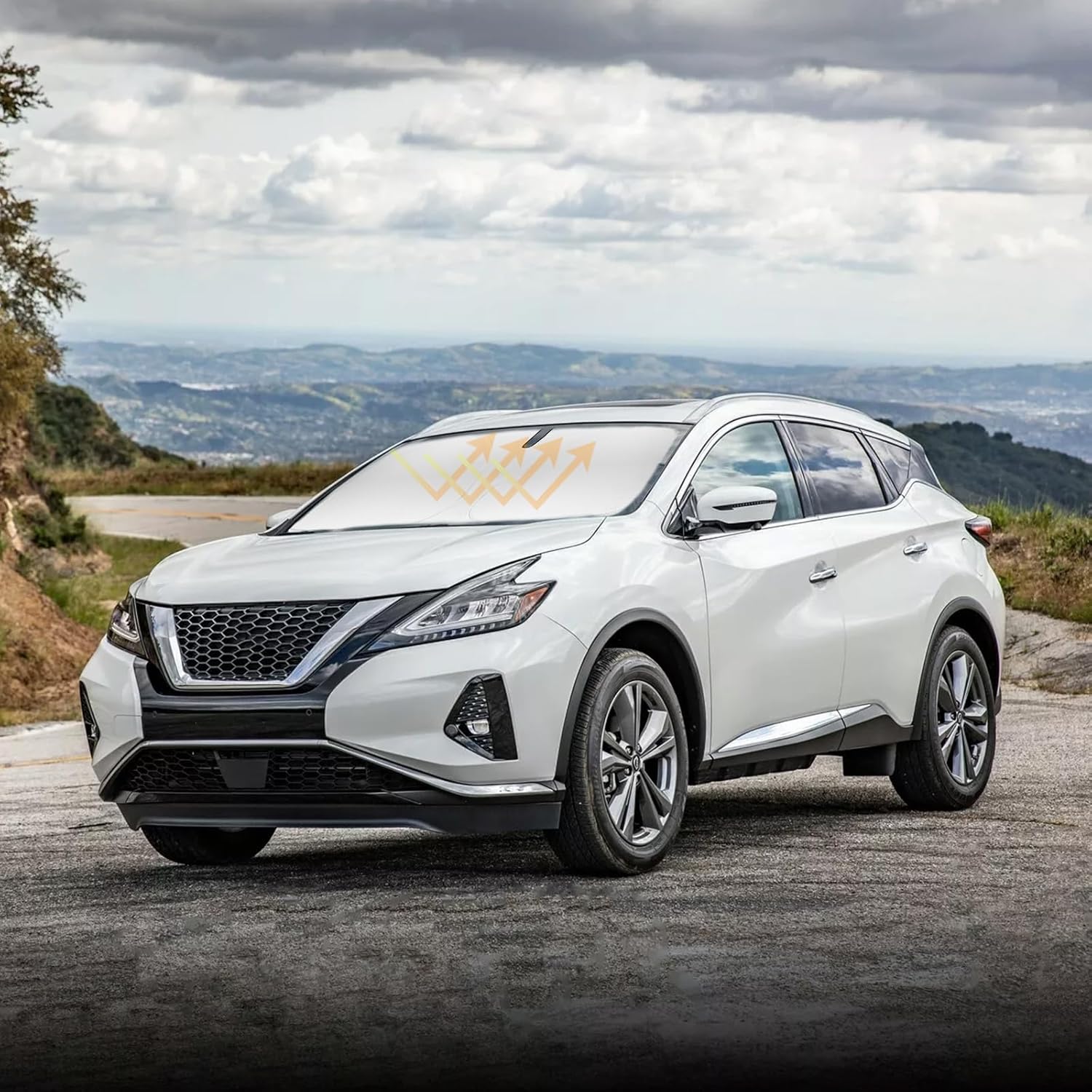 - 【Vehicle Specific】Our Windshield Shade Cover custom fit for 2015-2023 2024 2025 Nissan Murano. The precise fit design and reinforced steel ring are sufficient to allow the sun shade to precisely fit the front window without the need for suction cups to hold it in place, effectively protecting your car from the sun's rays.