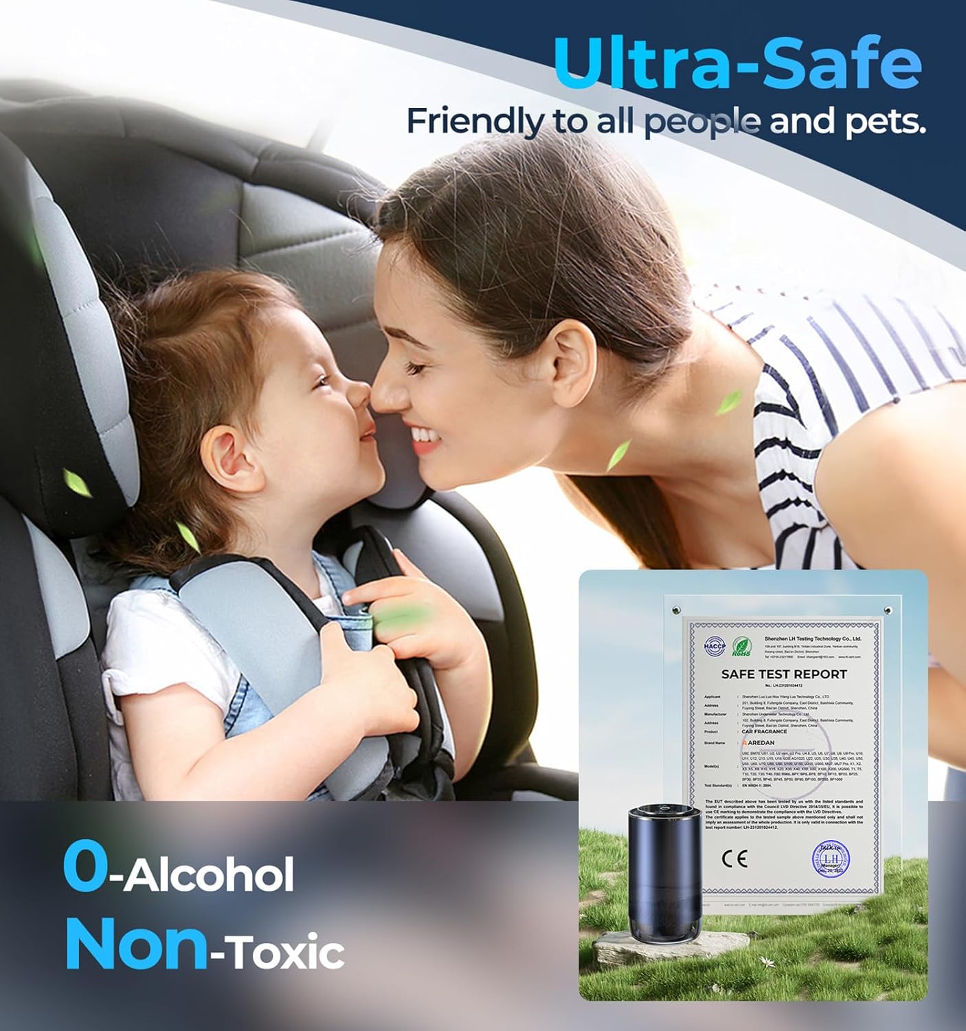 - ✅【Safe, Natural Scents for Families, Pet owners, and Smokers.】Breathe easy with natural, alcohol-free fragrances that are safe for the whole family, including kids and pets. Our air diffuser uses essential oils, which are generally considered to be a more natural and safer option compared to synthetic fragrances, offering a healthier, natural, alcohol-free alternative to synthetic scents. If you always buying air fresheners to keep up with the pets/smokers/kids smell, you will enjoy a fresh, customizable aroma in your car, bedroom, knowing it's both safe and certified for quality.