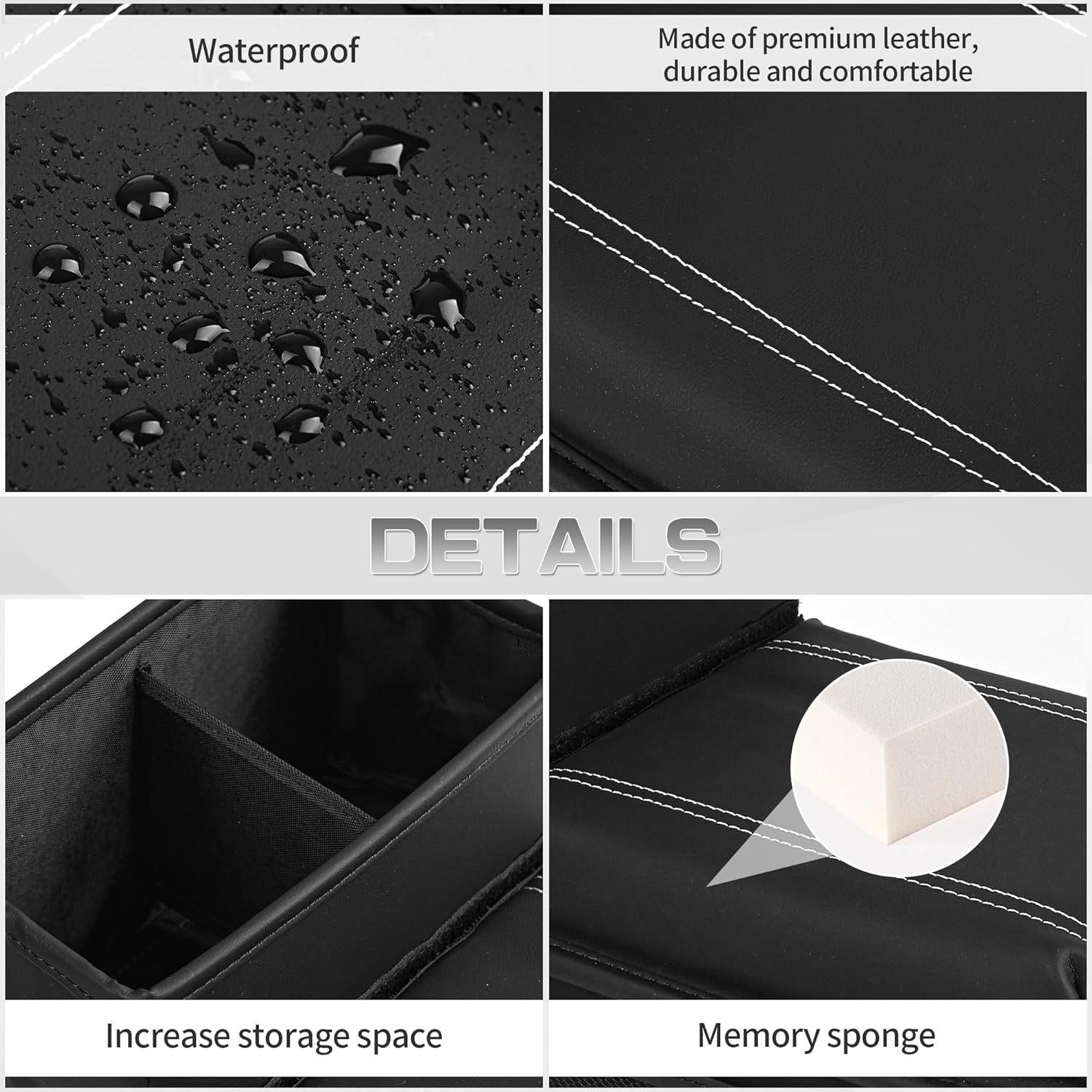 - 【UPGRADED STORAGE DESIGN】This armrest box pad has added mesh storage on both sides and a storage compartment behind the armrest pad, which can be used to store beverages, water bottles, wallets, keys, and other miscellaneous items.