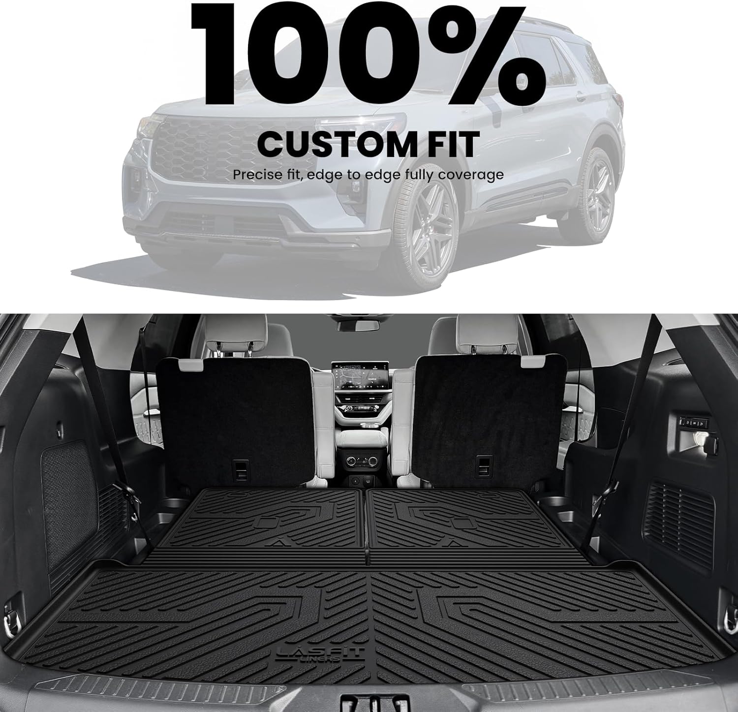 - 【Fits Like a Glove】Custom Fit for Ford Explorer 2020-2025. LASFIT cargo and backrest mat are precisely designed using 3D real-vehicle scanning technology to accurately capture interior data and undergo multiple vehicle verification to ensure a vehicle specific fit