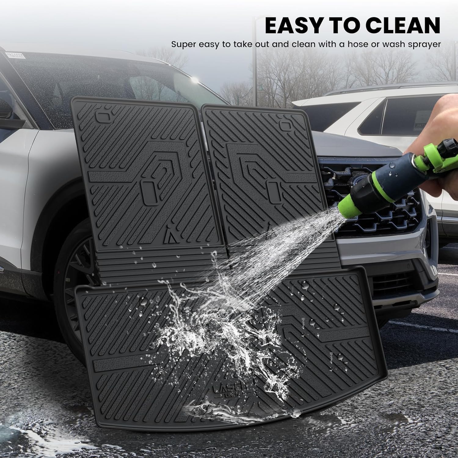 - 【Easy to Install & Clean】Integrated design eliminates the hassle of separate installation and repeated disassembly, simplifies operation, and allows for cleaning the entire mats in one go. The trunk and backrest mats effortlessly organize various in-car debris (liquids/crumbs/hair/sand) and support cleaning with cloths, vacuums, or hose, offering instant clean and immediate reuse